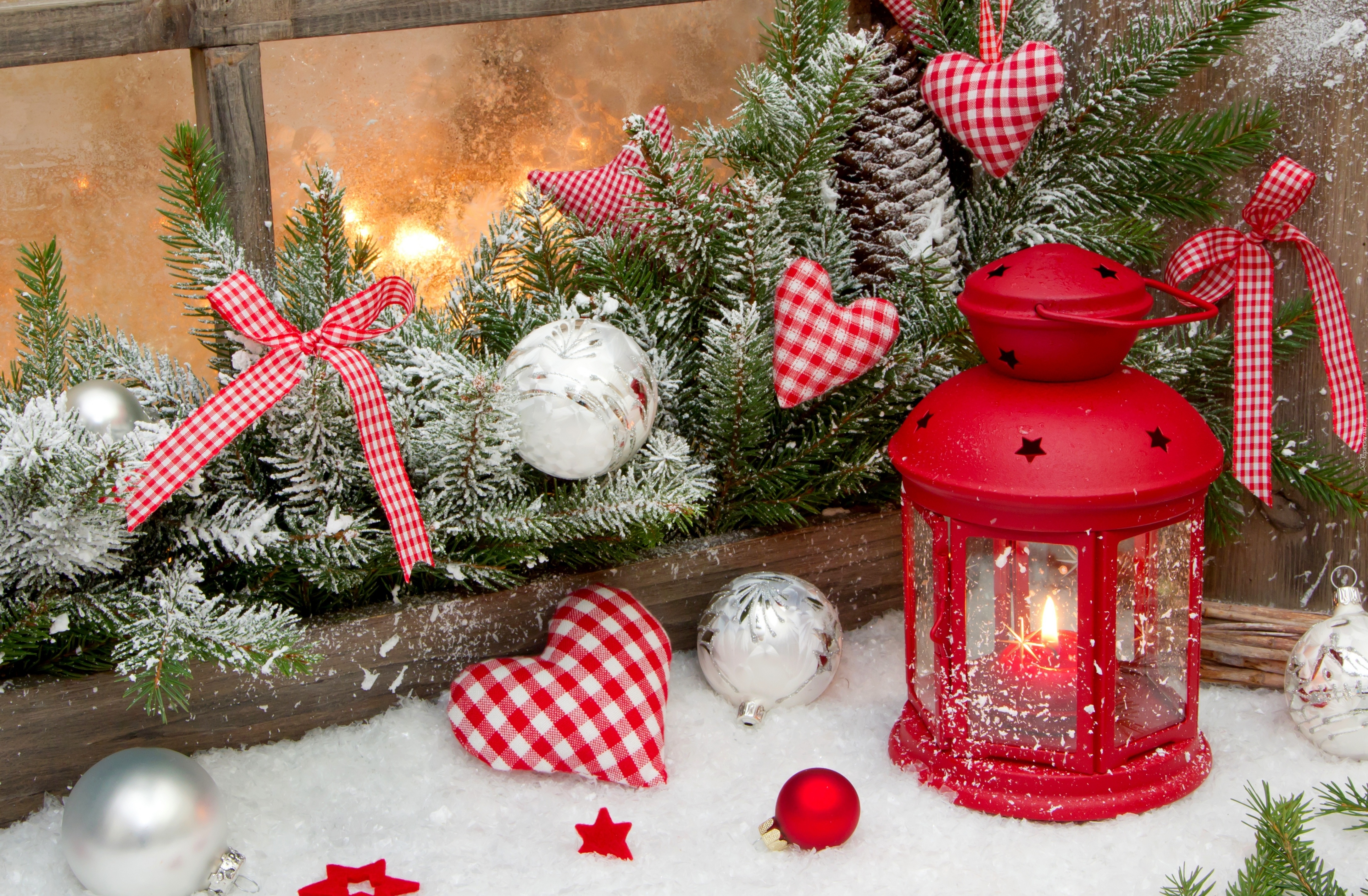 Edytor tapety: Lampion, Świeczka, Bombki, Świąteczna, Kompozycja