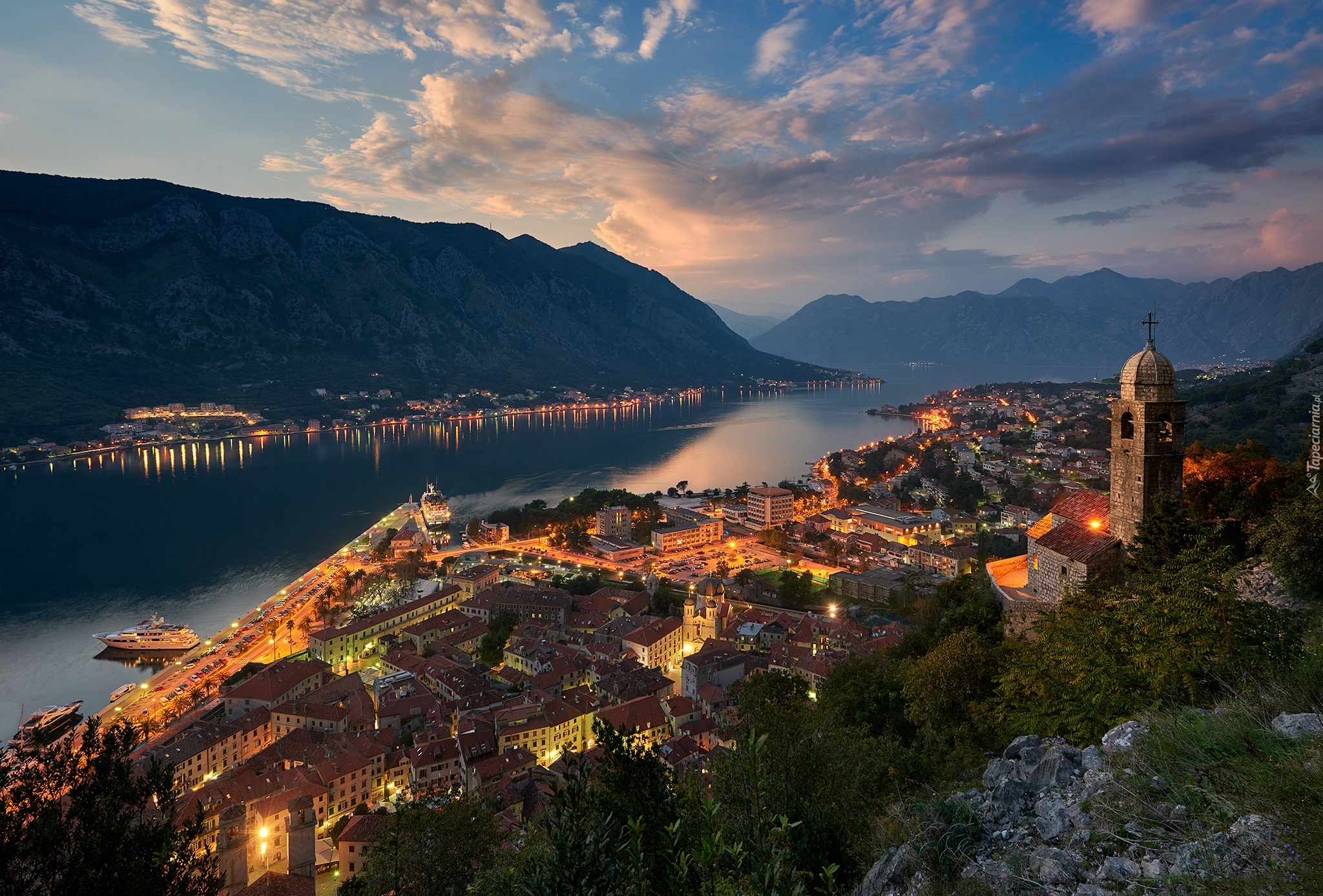 Edytor tapety: Czarnogóra, Porto Montenegro, Rzeka, Góra, Miasto
