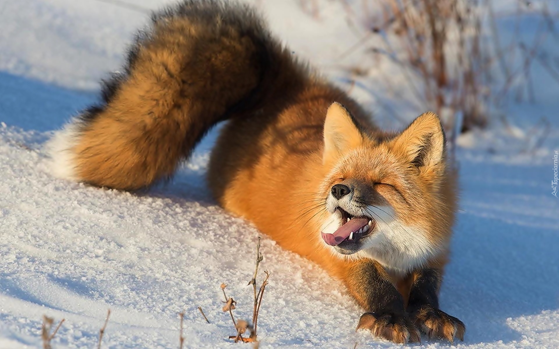 Edytor tapety: Lisek, Słoneczko, Śnieg, Zima