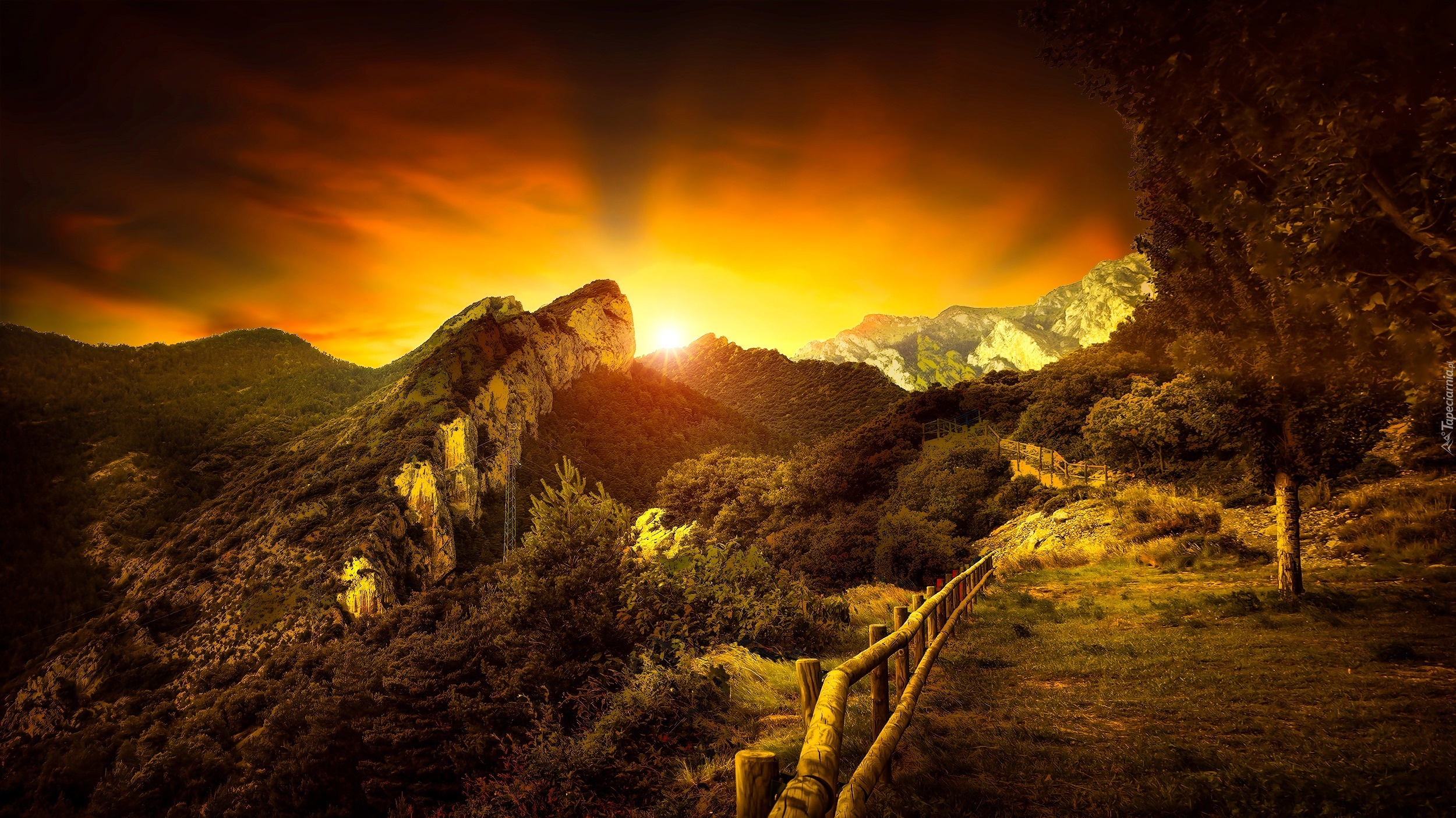 Edytor tapety: Góry, Zachód Słońca, Krajobraz, Hiszpania
