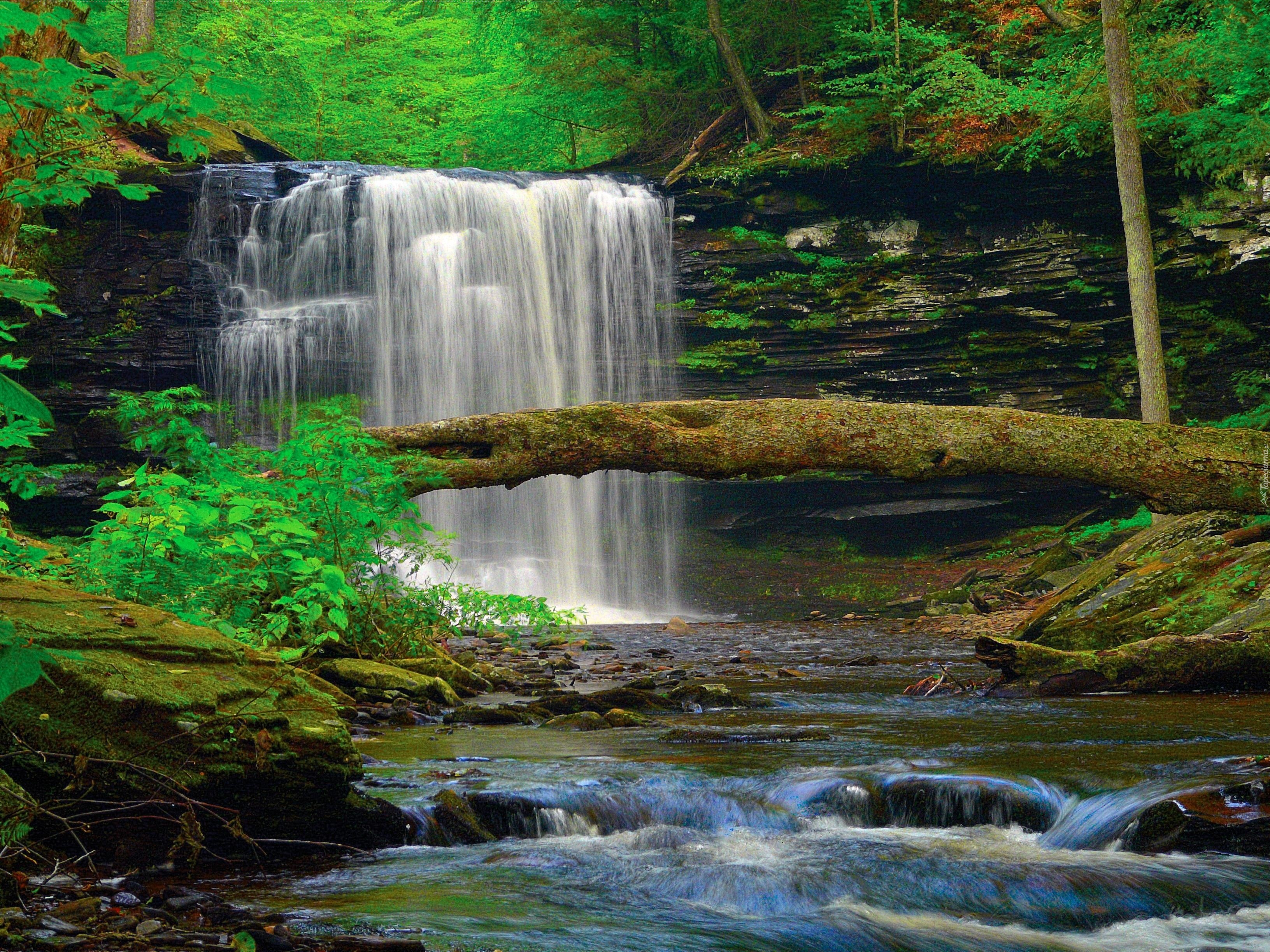 Edytor tapety: Las, Lato, Wodospad, Pień, Drzewa