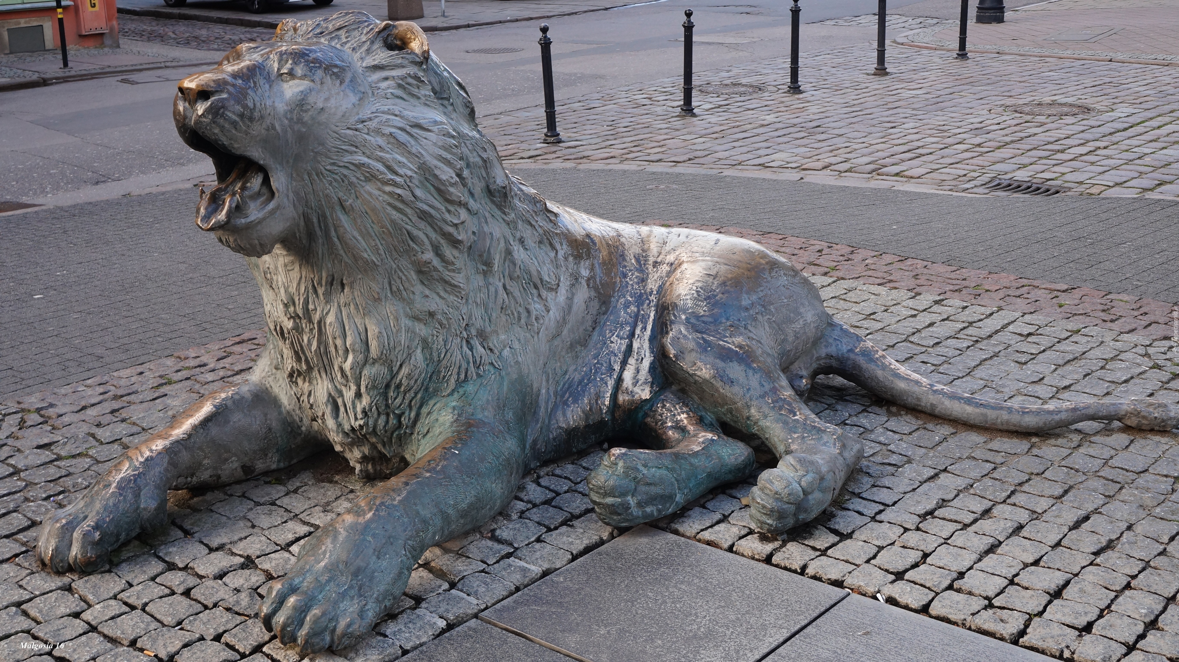 Edytor tapety: Posąg, Ulica, Leżący, Lew