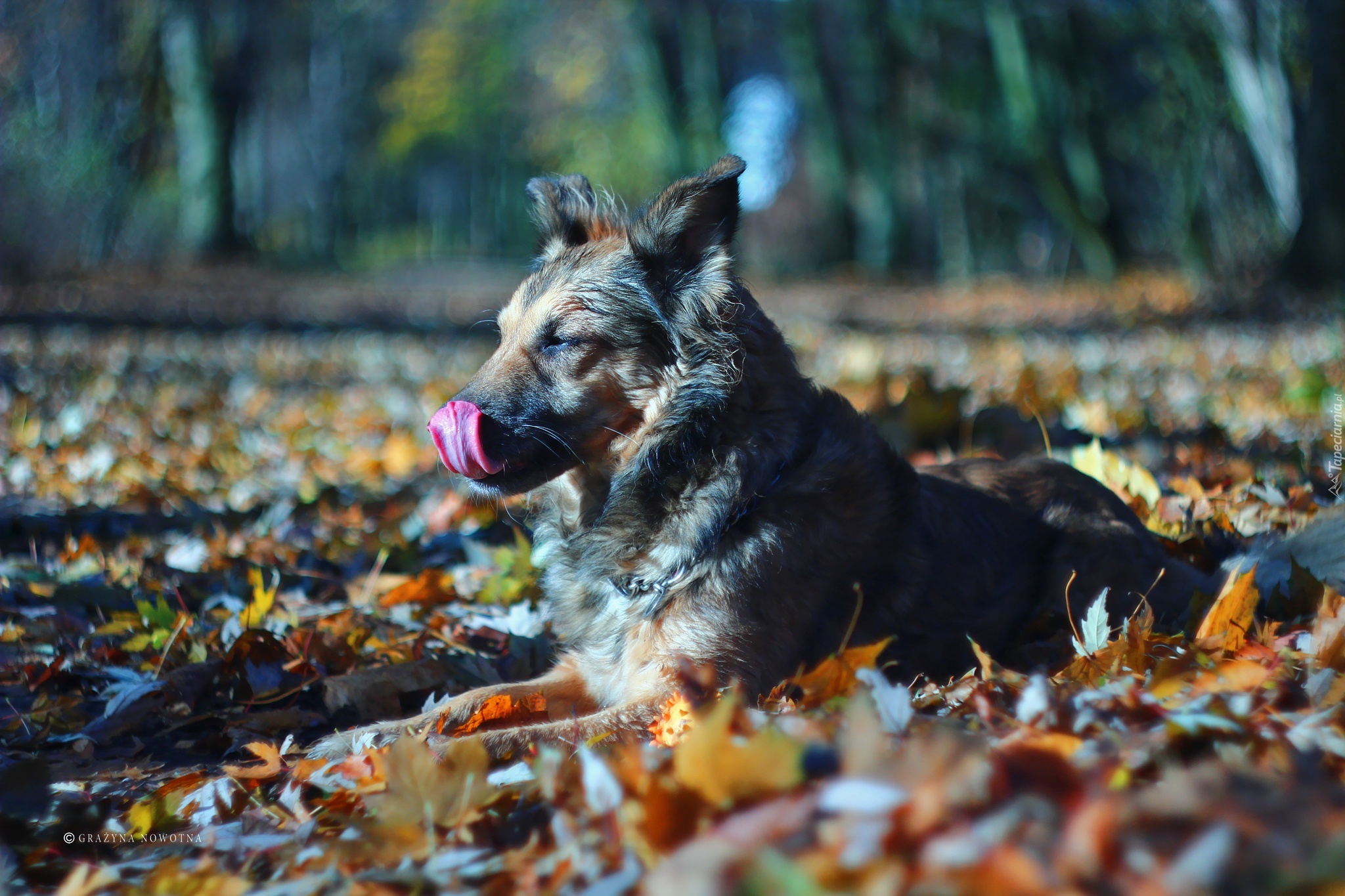 Edytor tapety: Pies, Suczka, Shila, Kundelek, Liście, Jesień