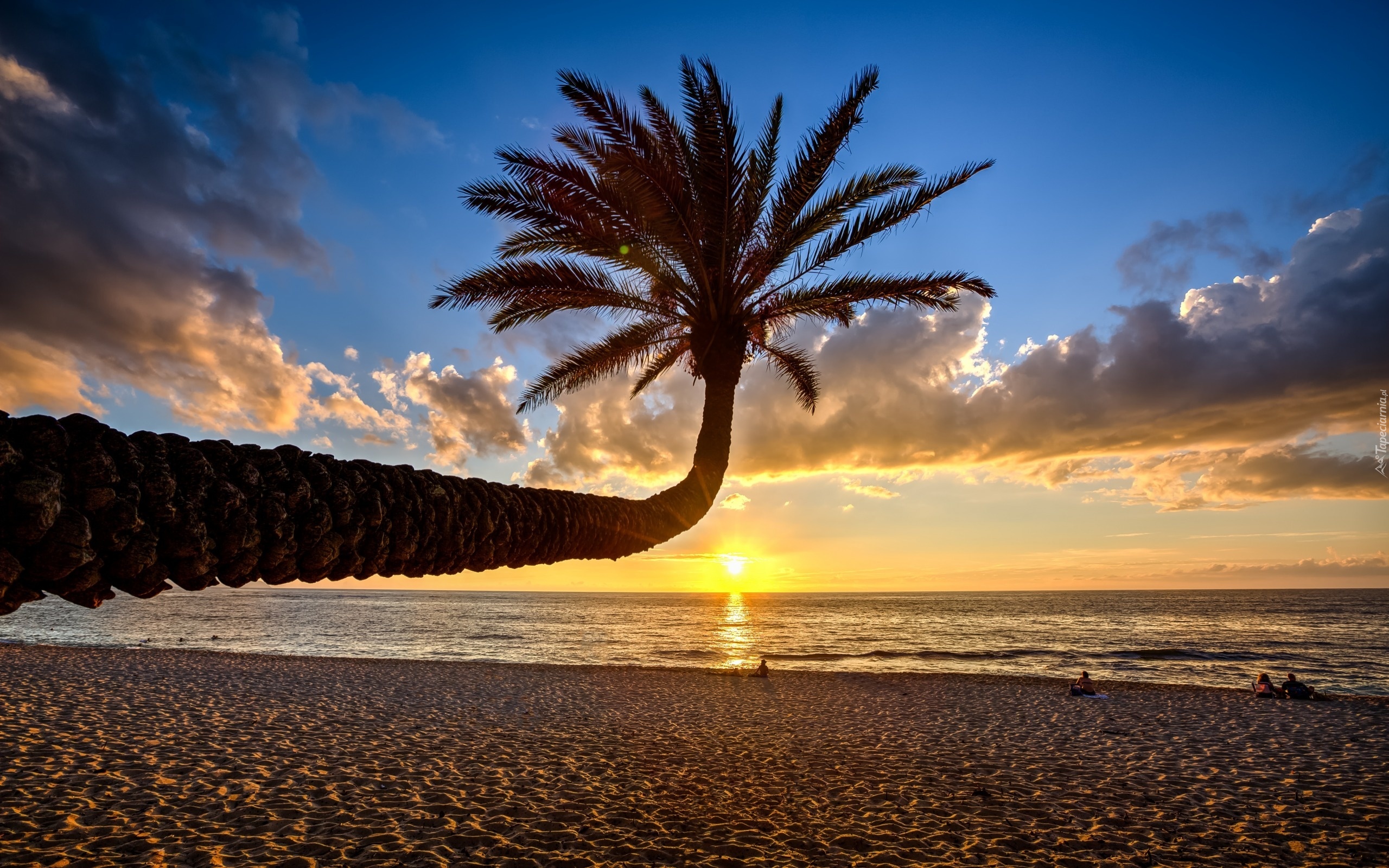 Edytor tapety: Plaża, Morze, Zachód Słońca, Palma, Chmury