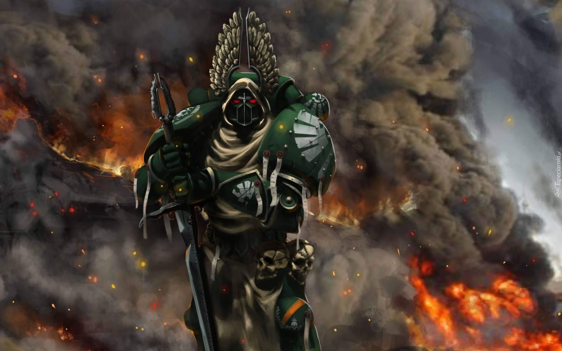 Edytor tapety: Postać, Rycerz, Miecz, Dym, Ogień
