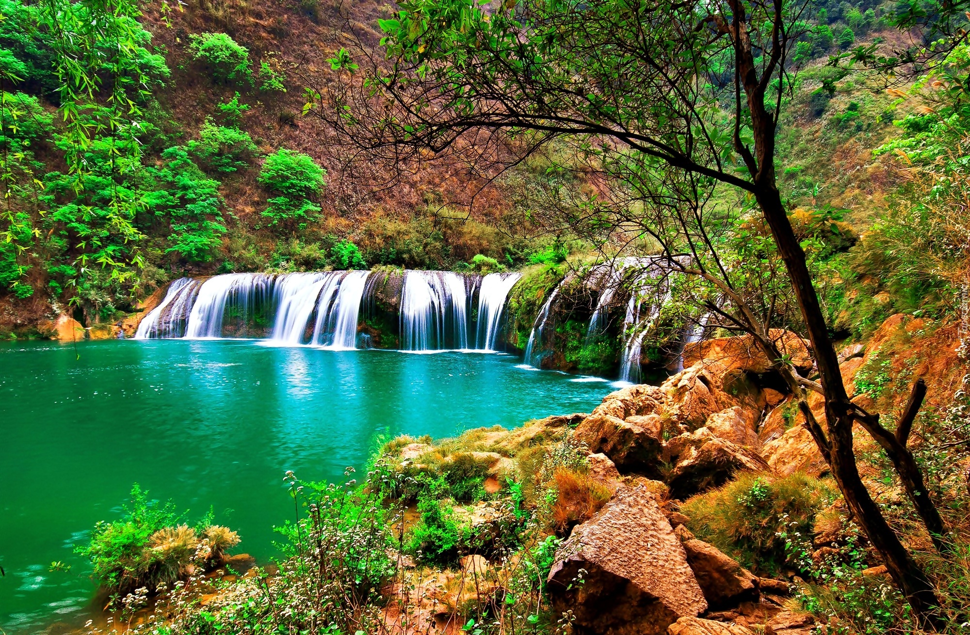 Edytor tapety: Las, Wodospad, Kamienie, Rzeka
