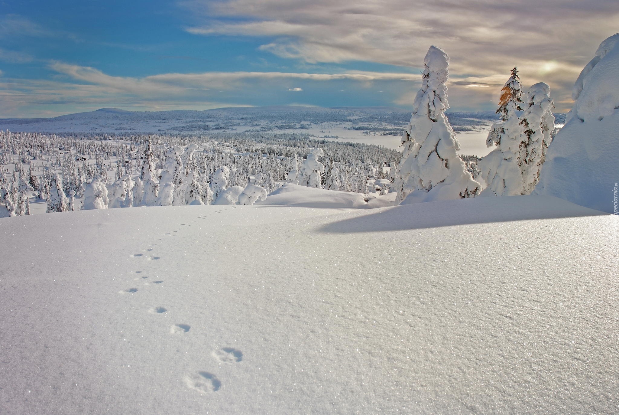 Edytor tapety: Zima, Las, Chmury, Wzgórza