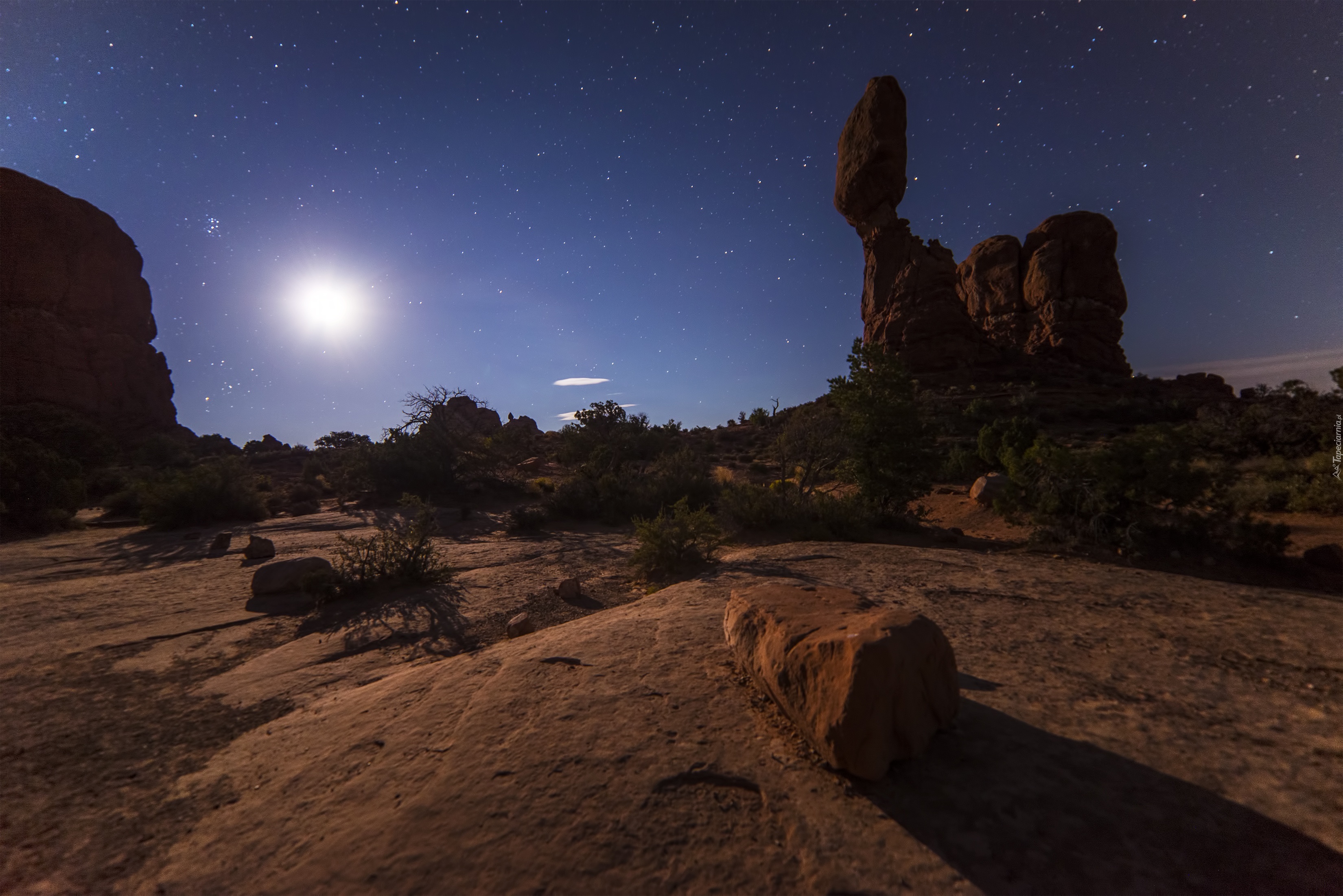 Edytor tapety: Noc, Kamienie, Gwiazdy, Krzaki