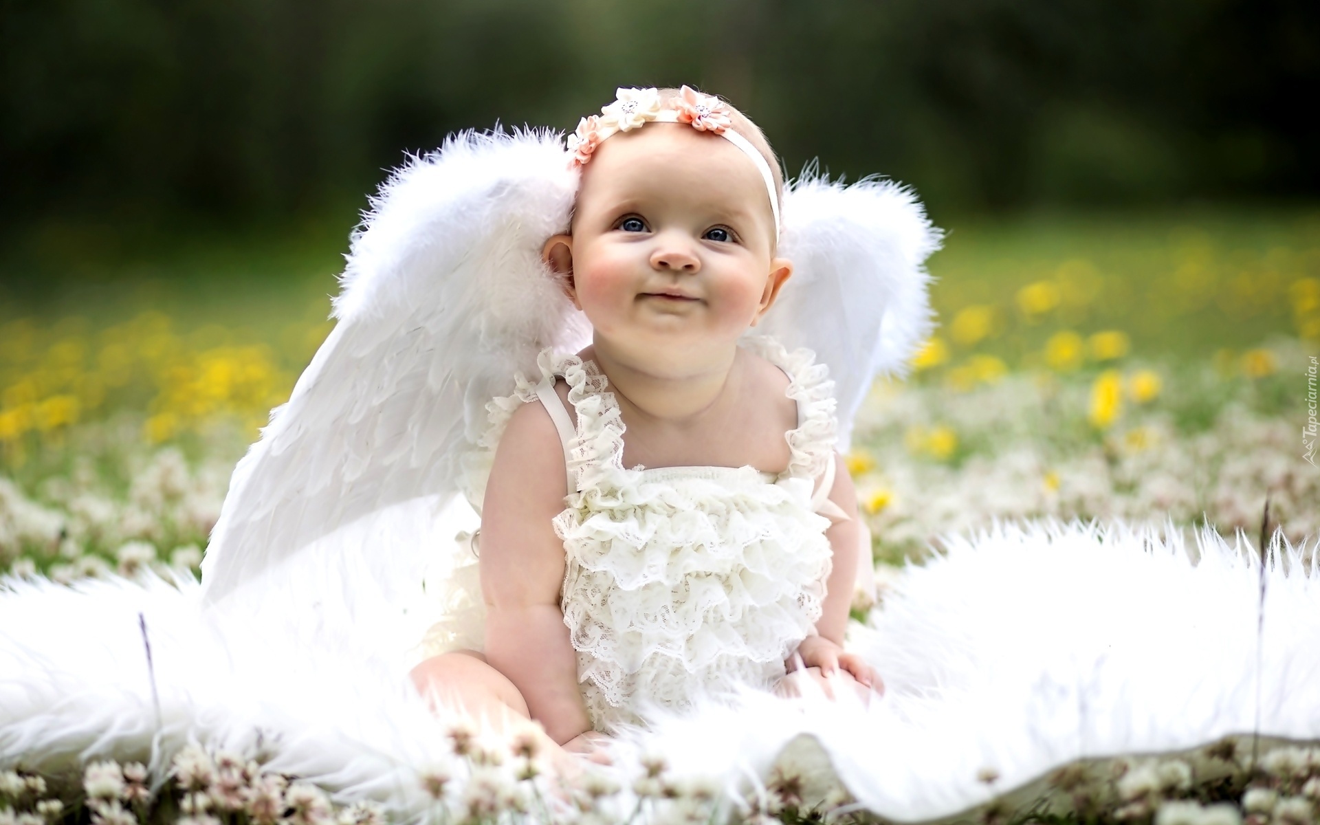 Edytor tapety: Łąka, Mała, Dziewczynka, Sukienka, Skrzydełka, Aniołka