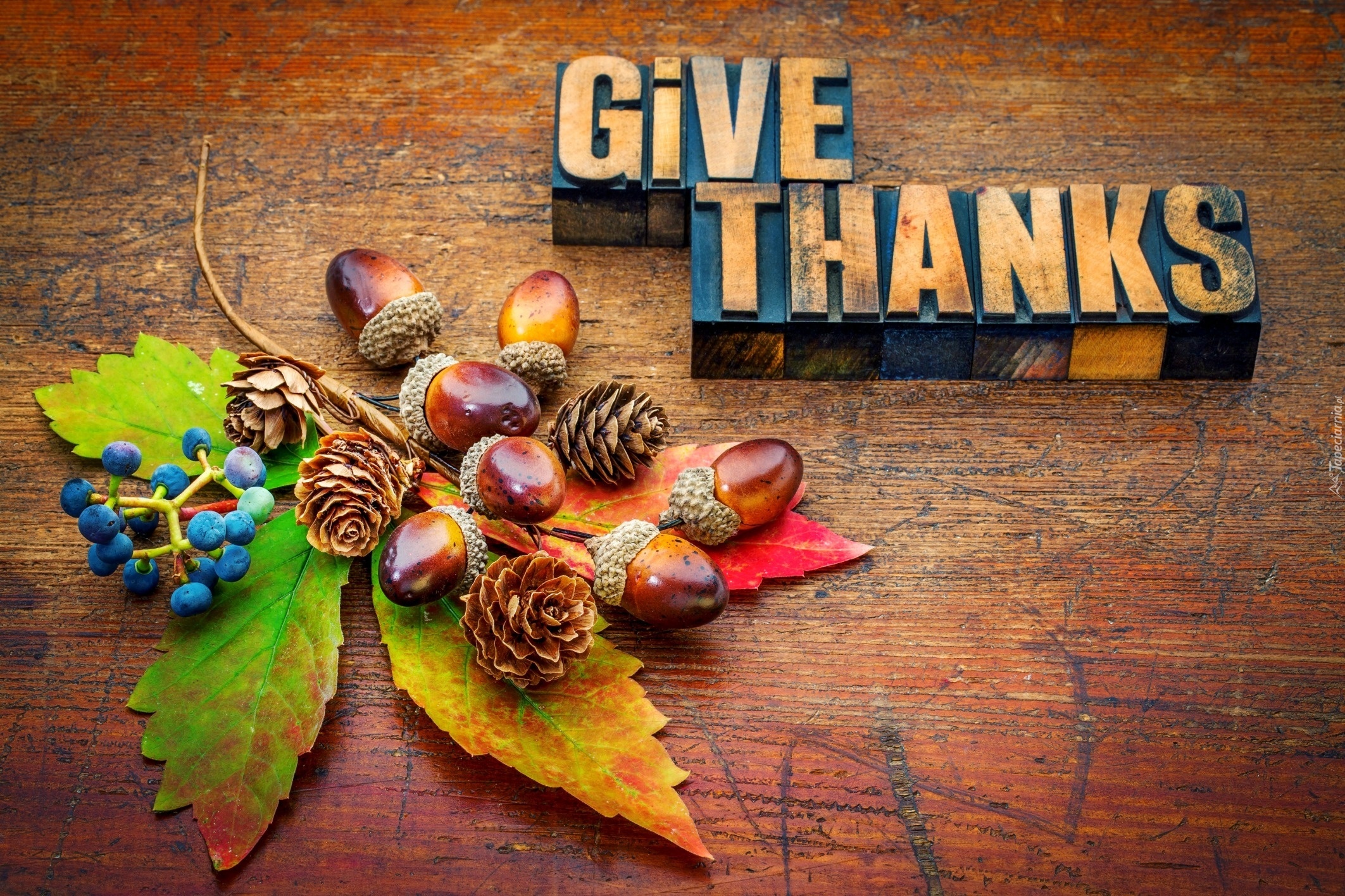Edytor tapety: Podziękowania, Liść, Szyszki, Żołędzie