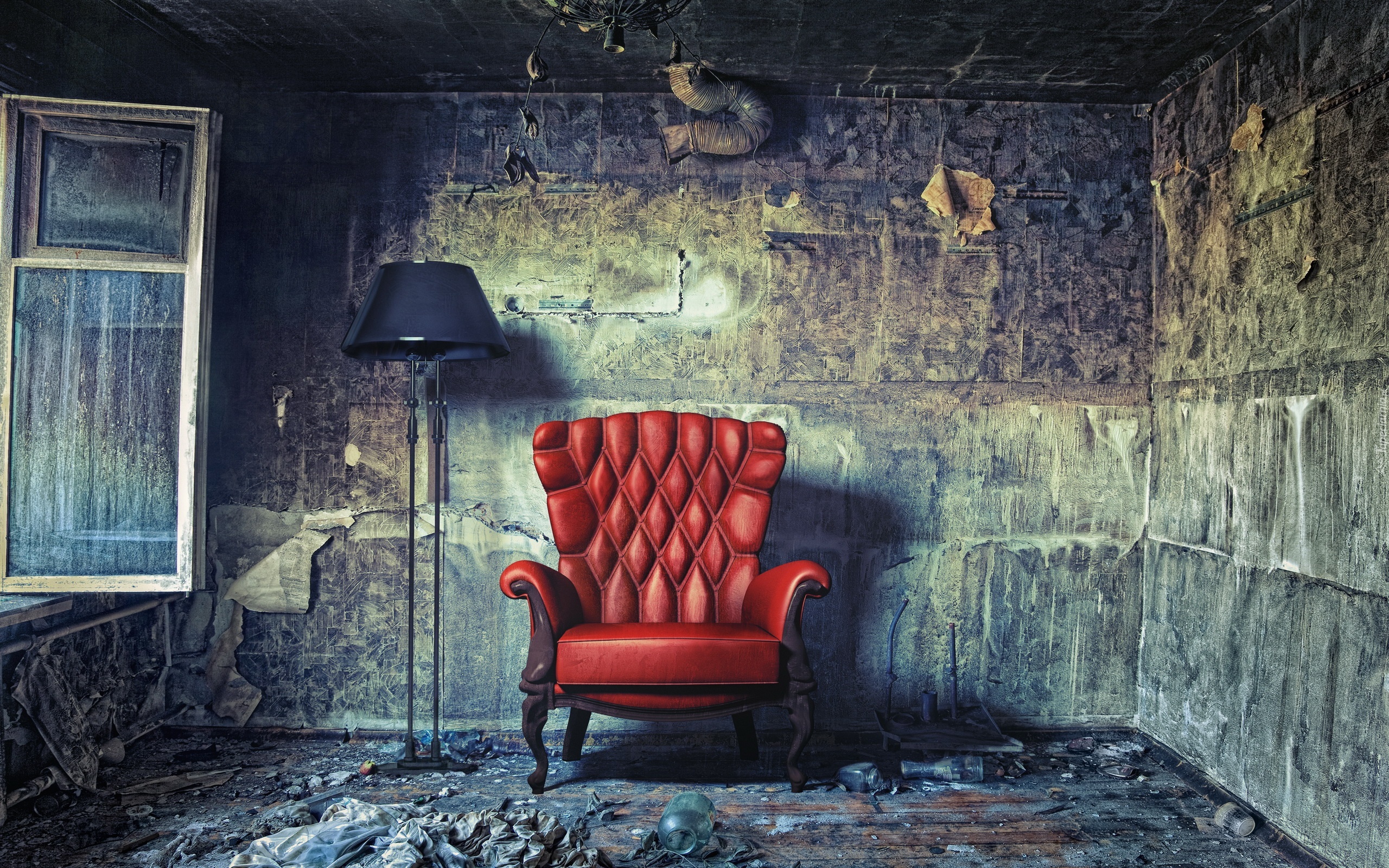 Edytor tapety: Zaniedbany, Pokój, Czerwony, Fotel