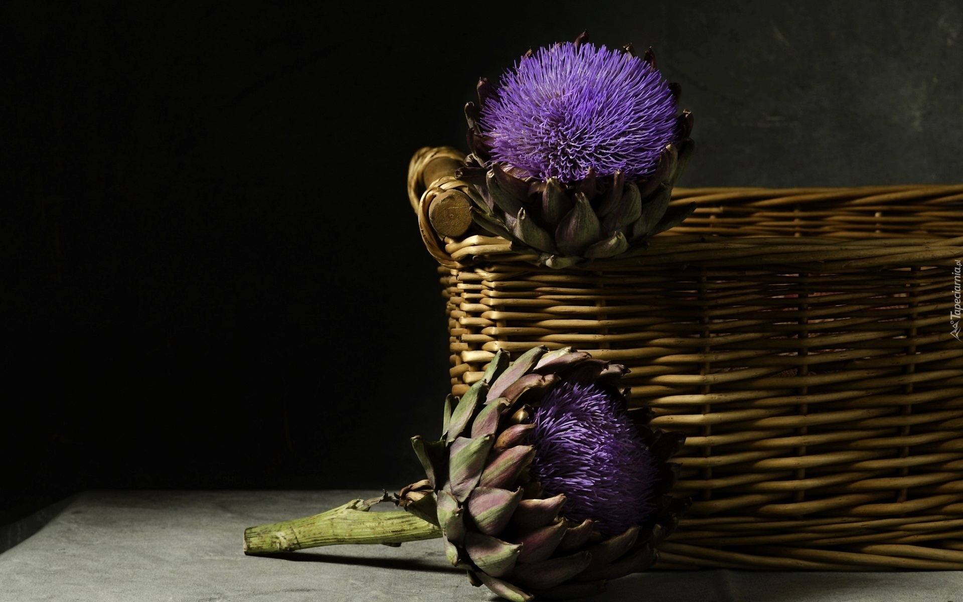 Edytor tapety: Kompozycja, Koszyk, Fioletowe, Kwiaty