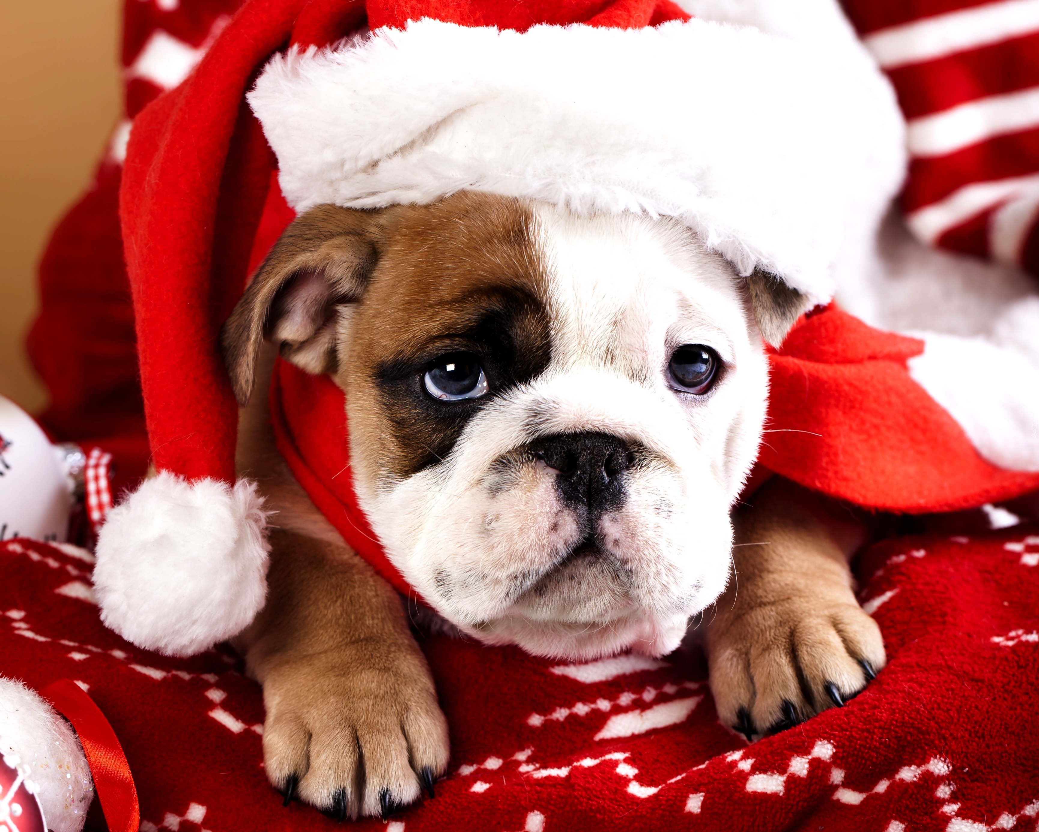 Edytor tapety: Buldog, Angielski, Czapka, Mikołaja