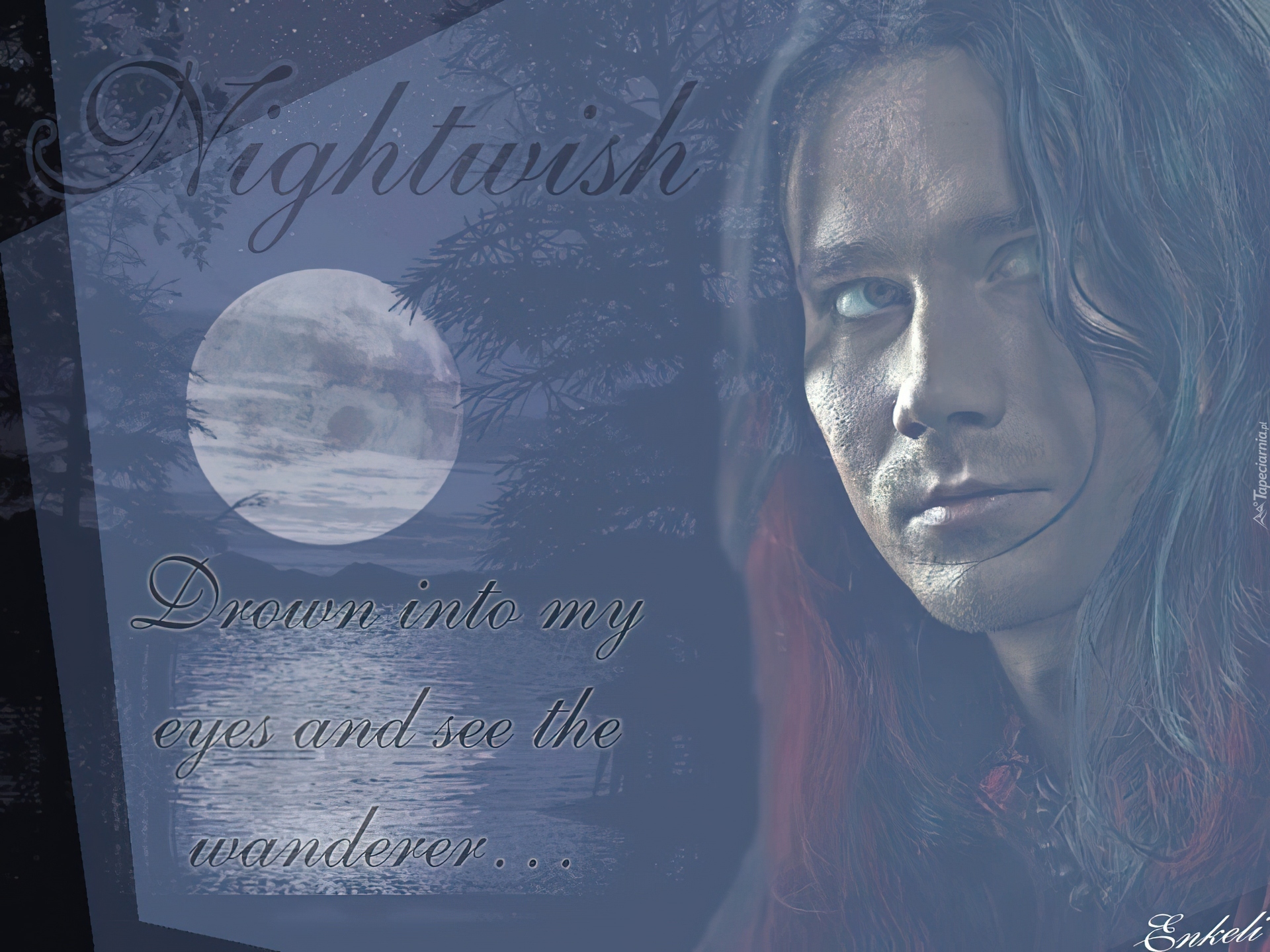 Edytor tapety: Nightwish,twarz,księżyc