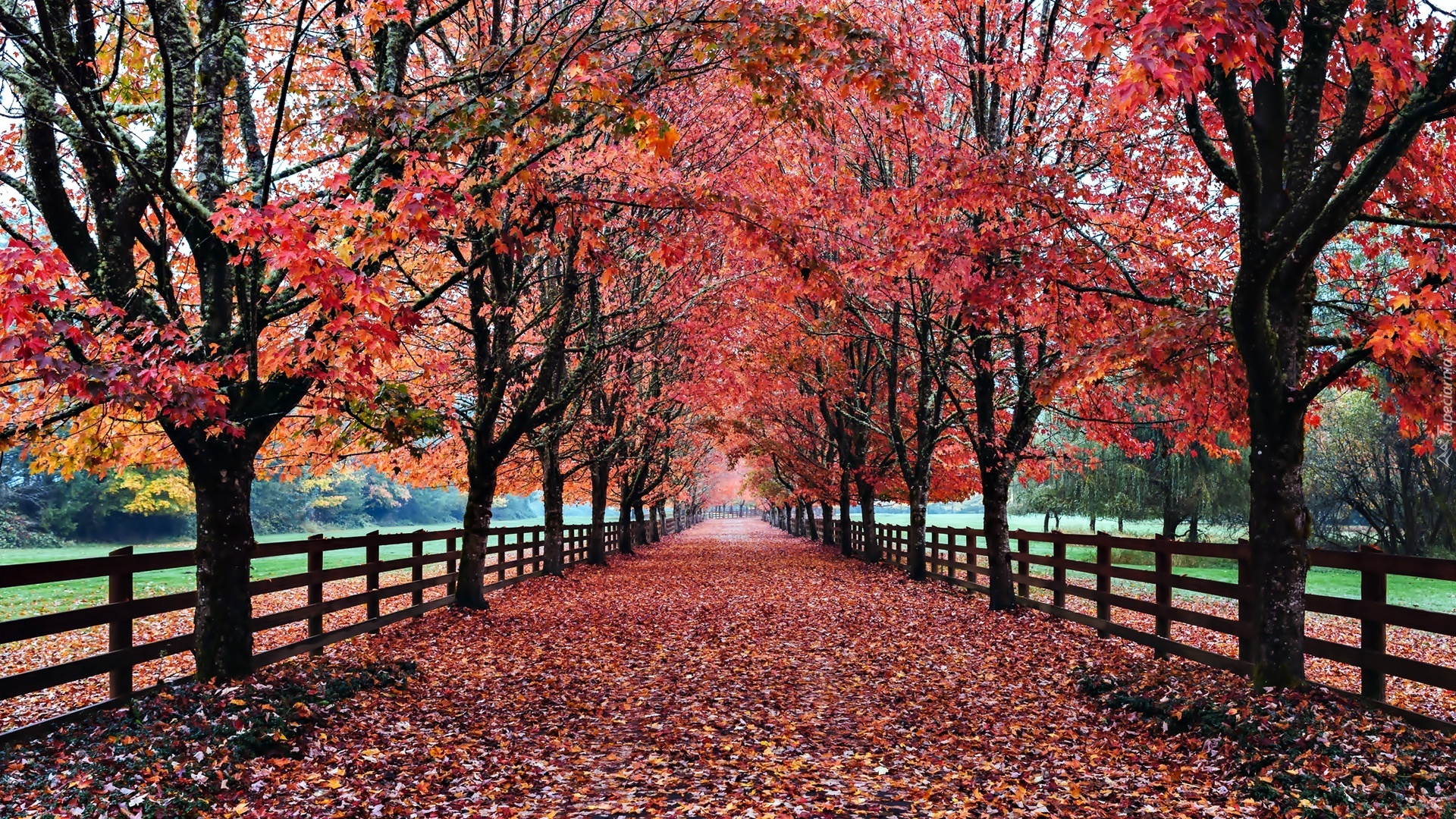 Edytor tapety: Jesień, Park, Aleja, Drzewa, Ogrodzenie, Liście