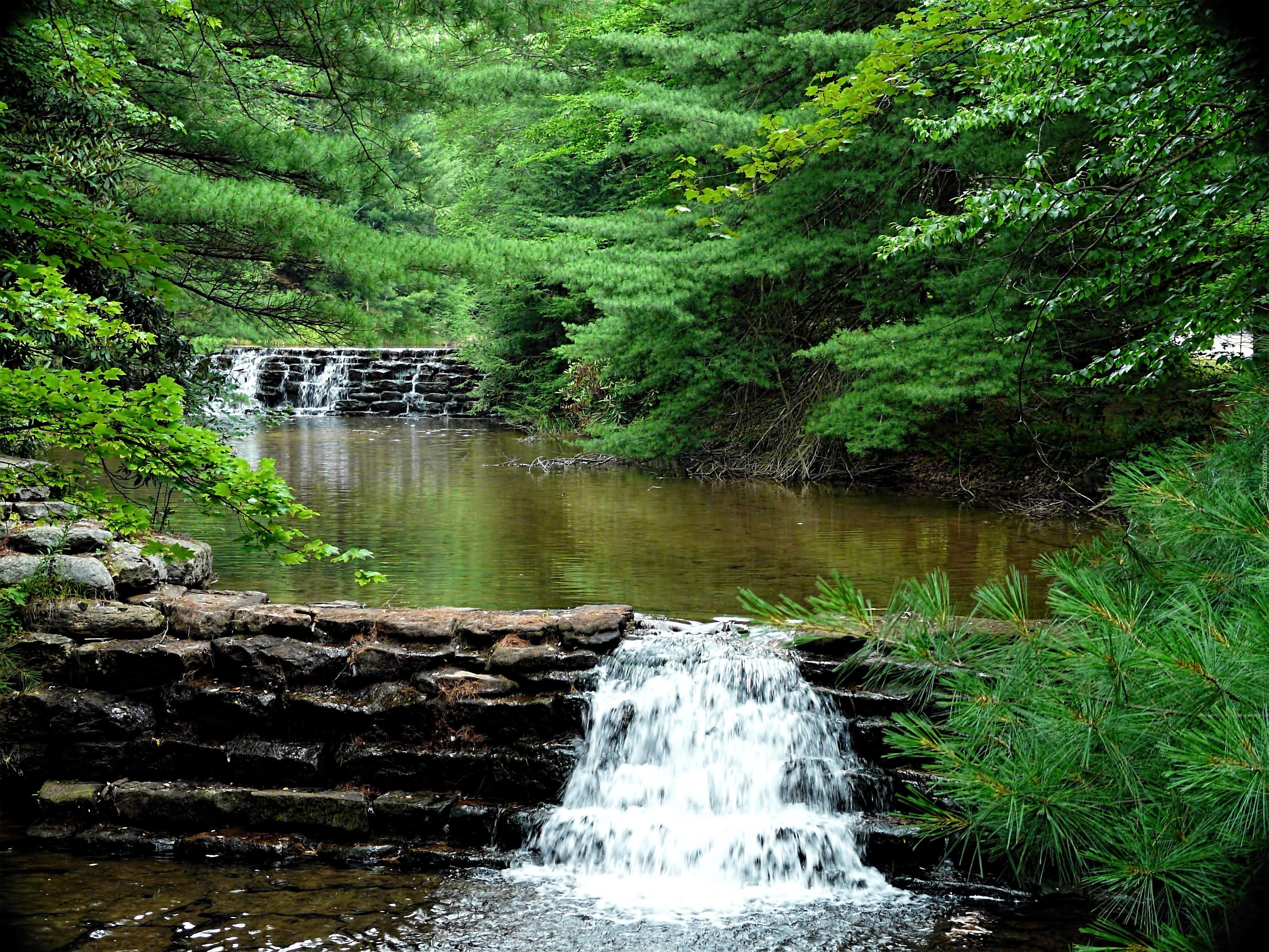 Edytor tapety: Wodospad, Jeziorko, Ogród, Drzewa