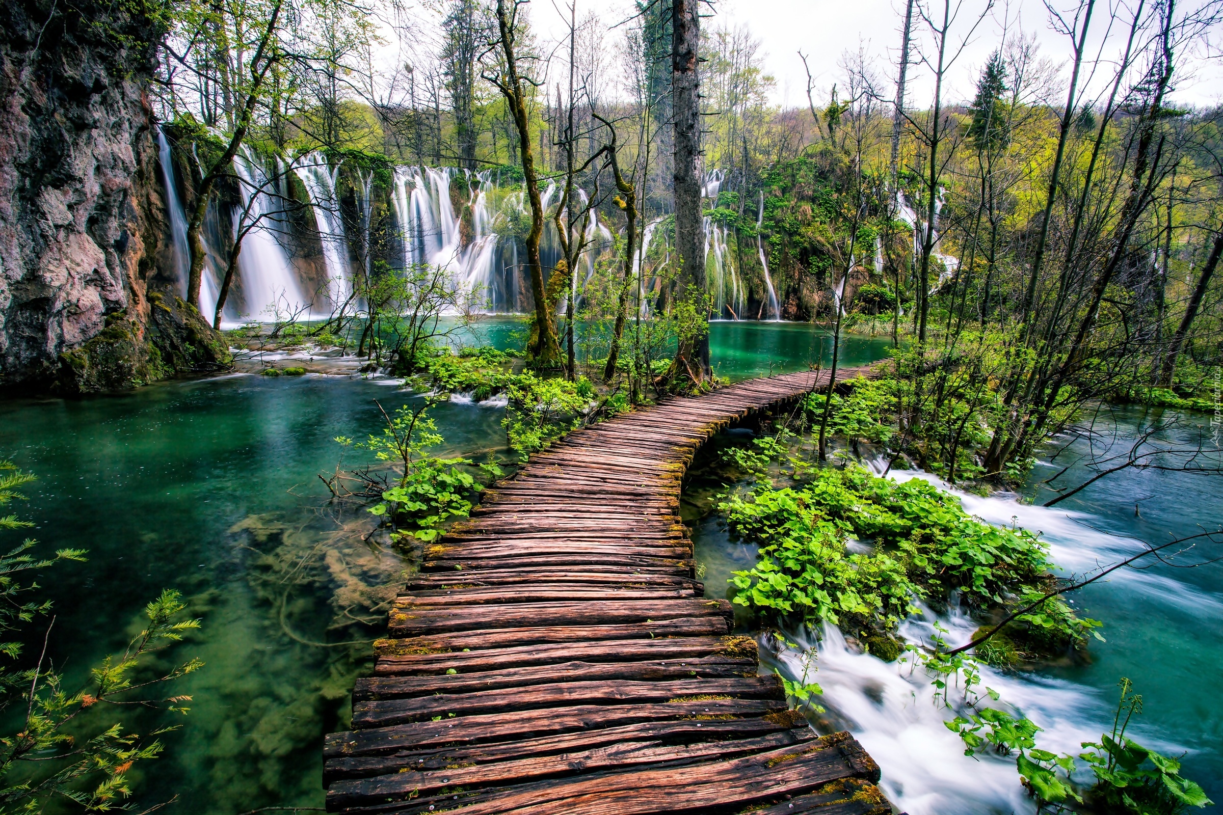 Edytor tapety: Wodospad, Jezioro, Pomost, Plitvice, Chorwacja