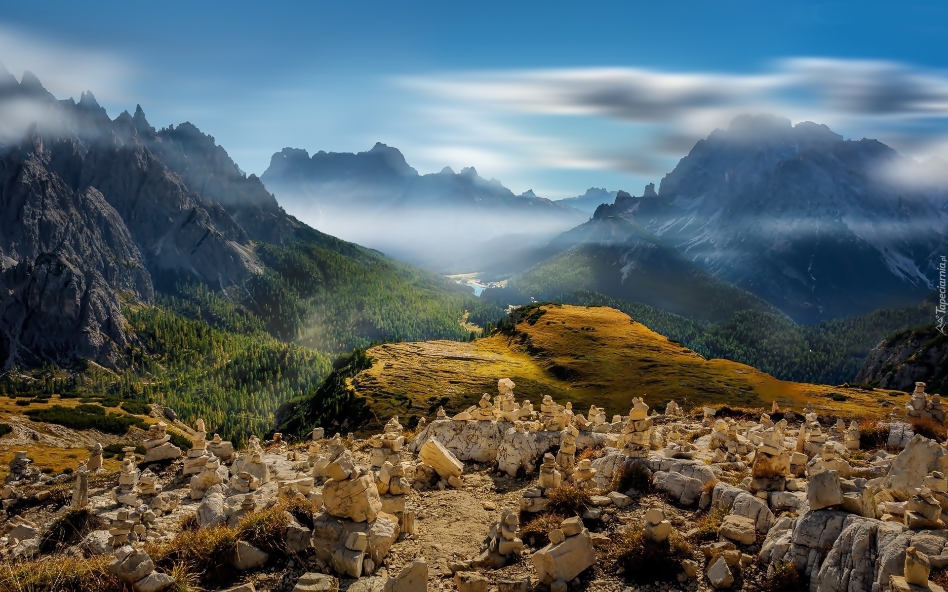 Edytor tapety: Góry, Lasy, Kamienie, Mgła, Chmury