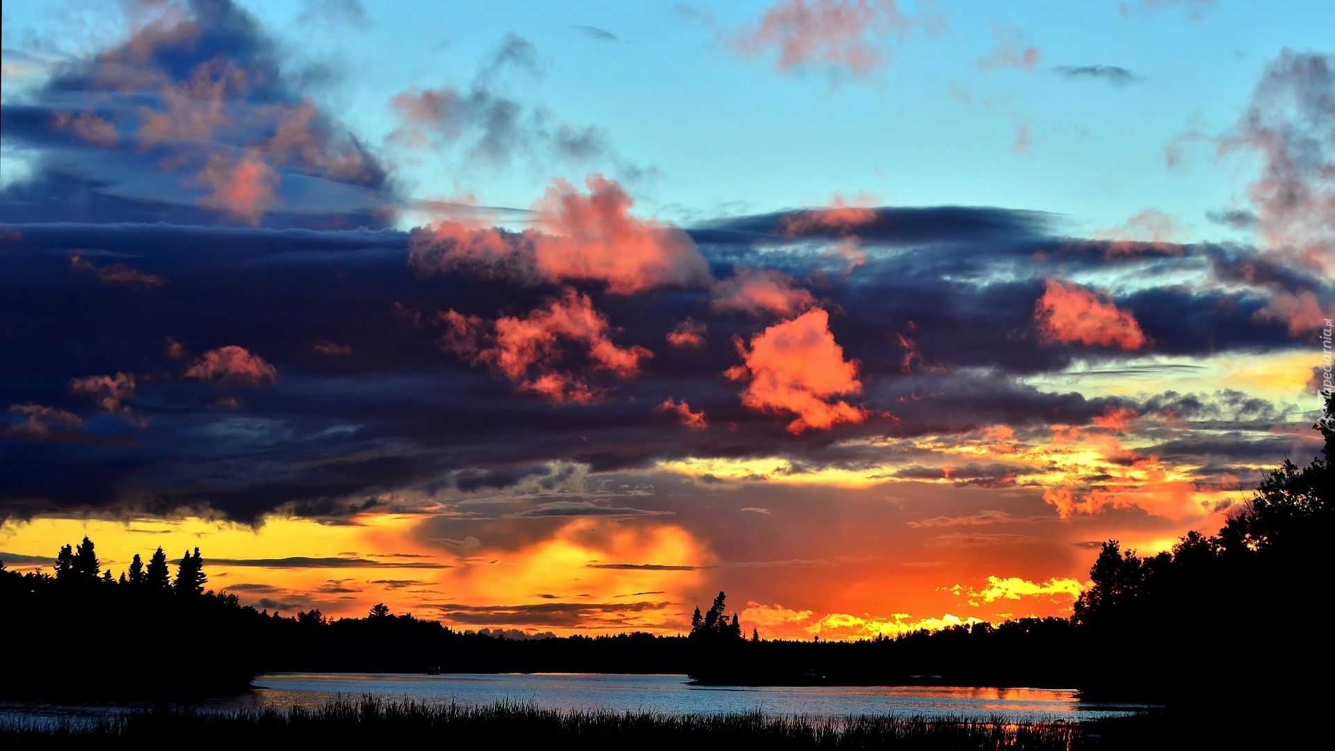 Edytor tapety: Zachód, Słońca, Jezioro, Chmury