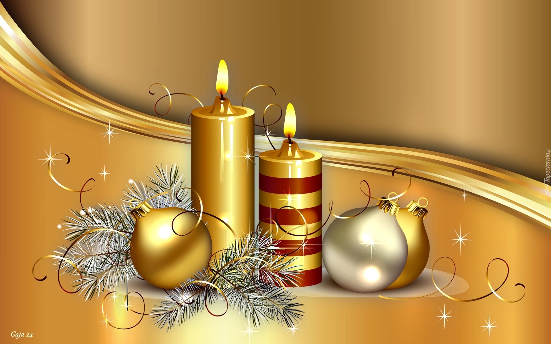 Edytor tapety: Świąteczny Stroik, Złote Tło