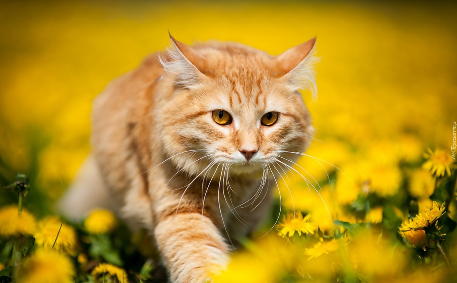 Edytor tapety: Rudy, Kotek, Łąka, Mniszek
