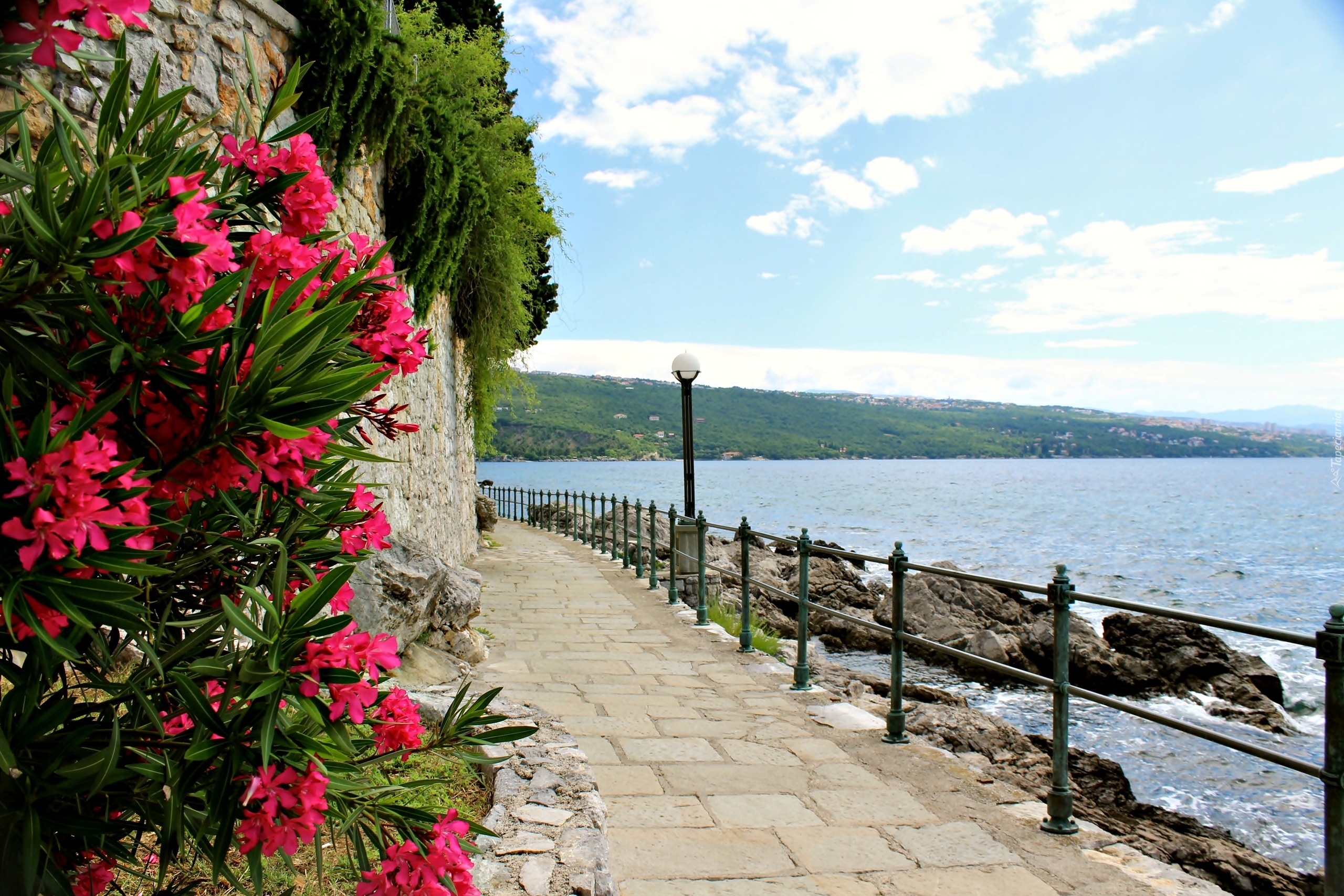 Edytor tapety: Jezioro, Droga, Mur, Kwiaty, Chorwacja