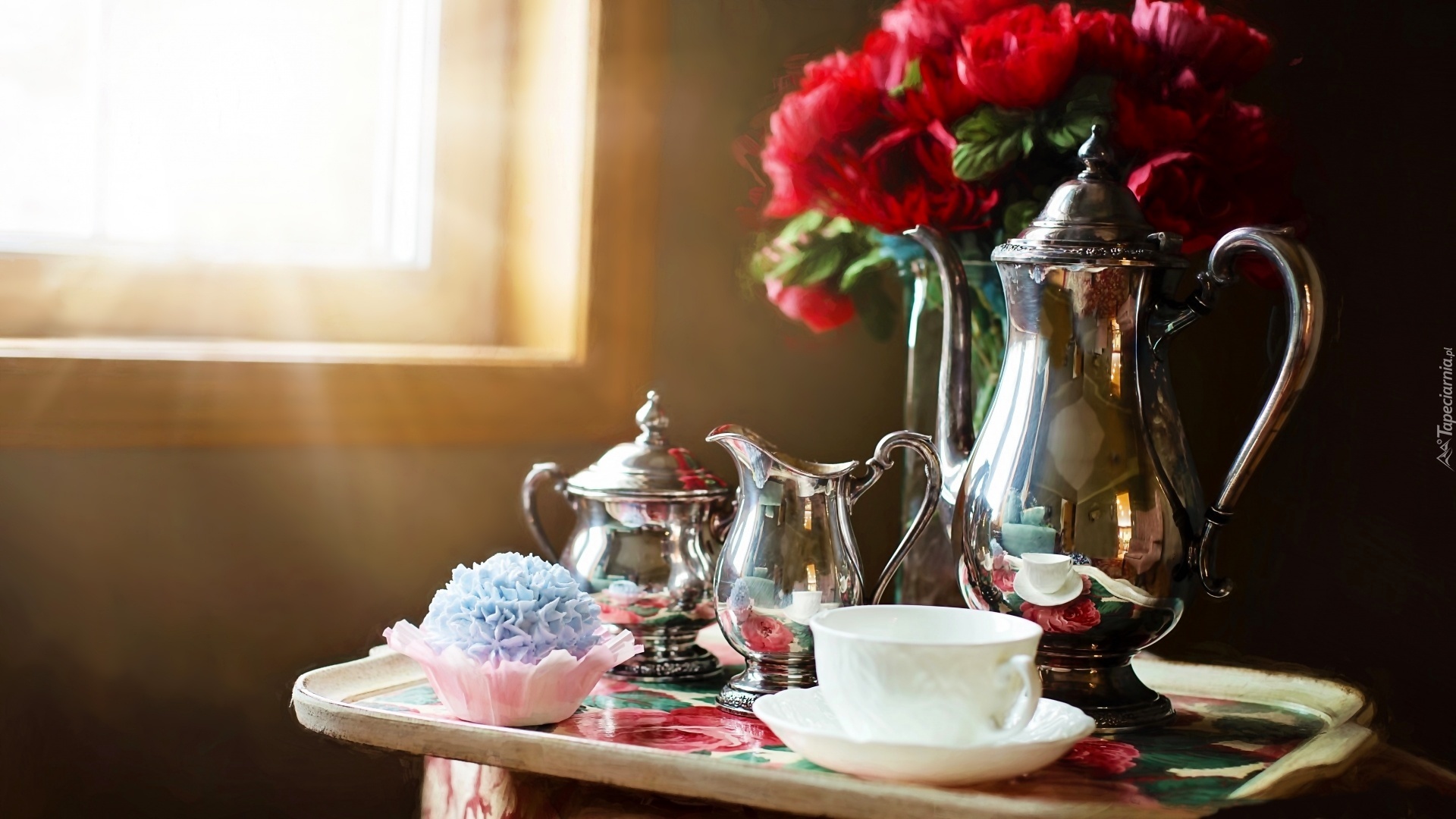 Edytor tapety: Kompozycja, Srebrna, Zastawa, Bukiet, Kwiatów