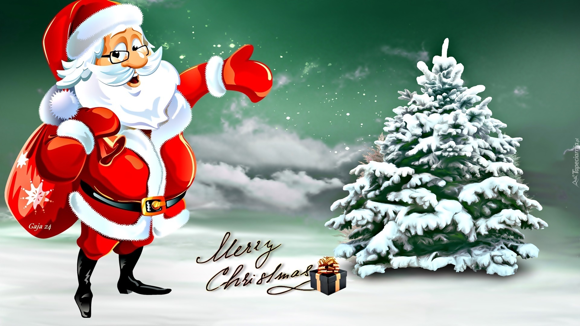Edytor tapety: Mikołaj, Zima, Choinka, Boże Narodzenie