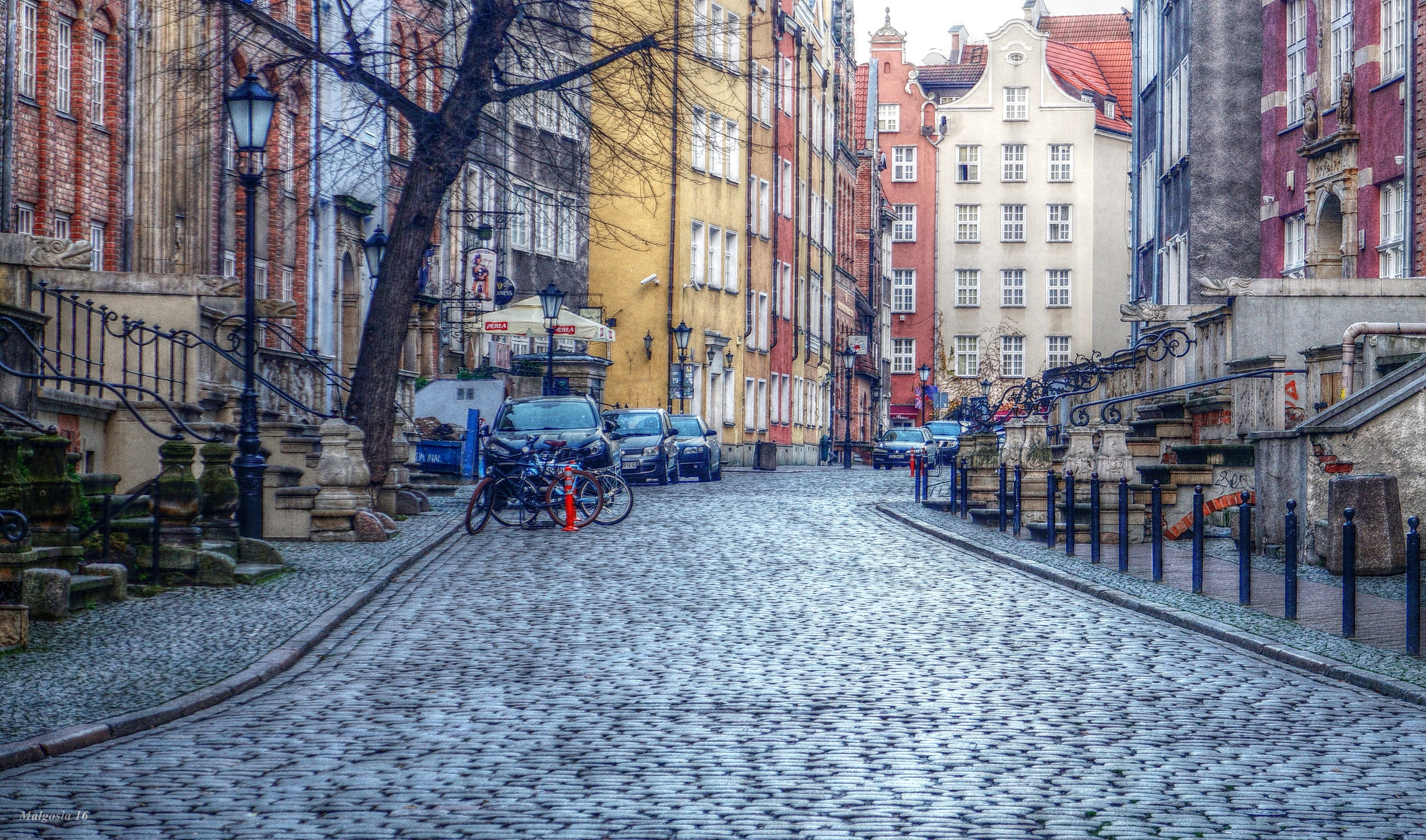 Edytor tapety: Gdańsk, Ulica, Rower, Kamienice, HDR
