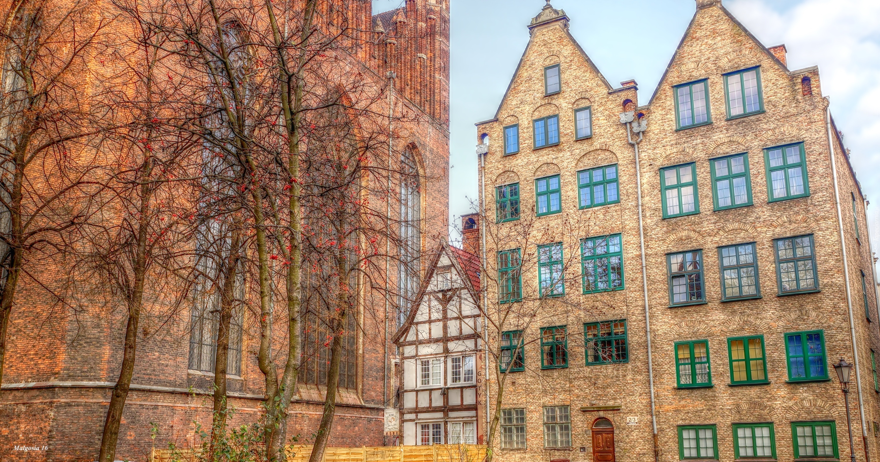Edytor tapety: Gdańsk, Kościół, Kamieniczki, Drzewa, HDR