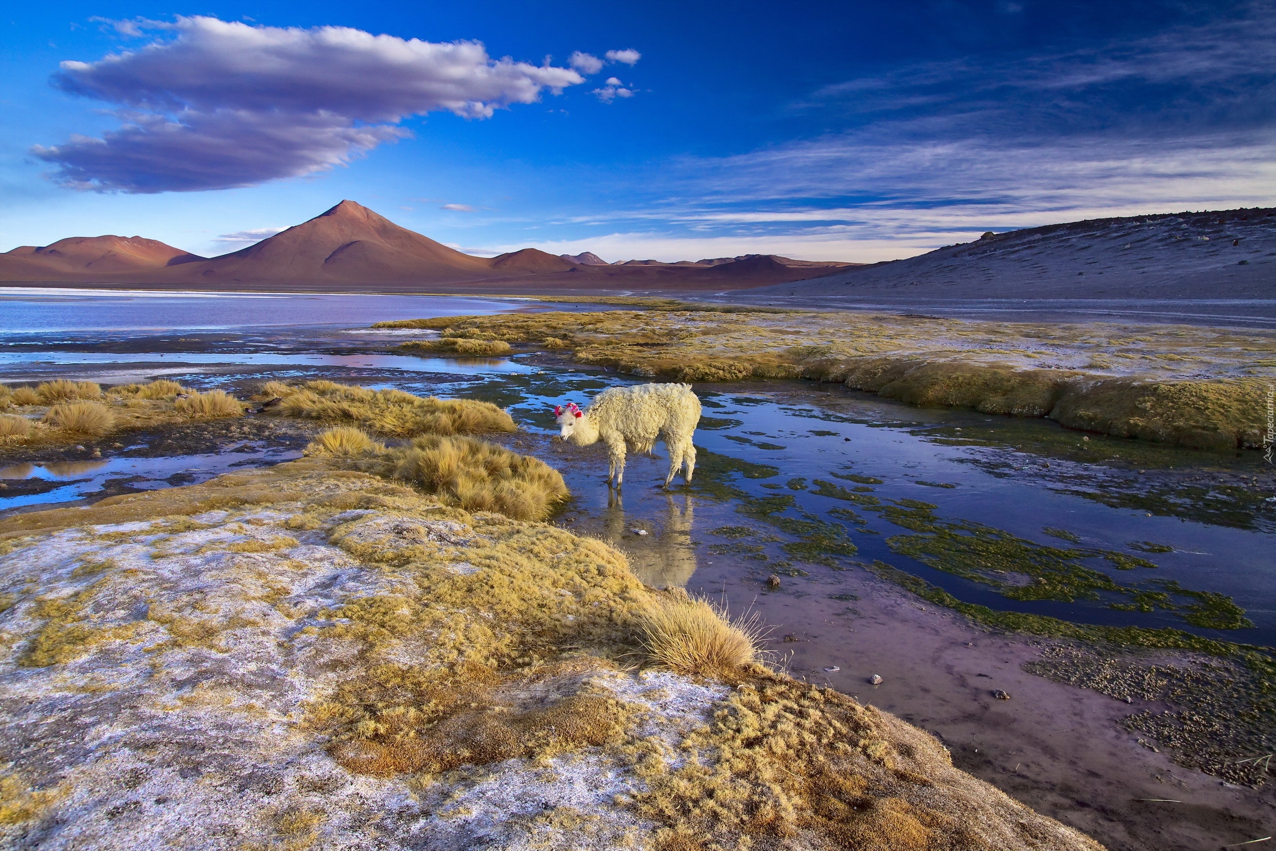 Edytor tapety: Boliwia, Jezioro, Alpaka