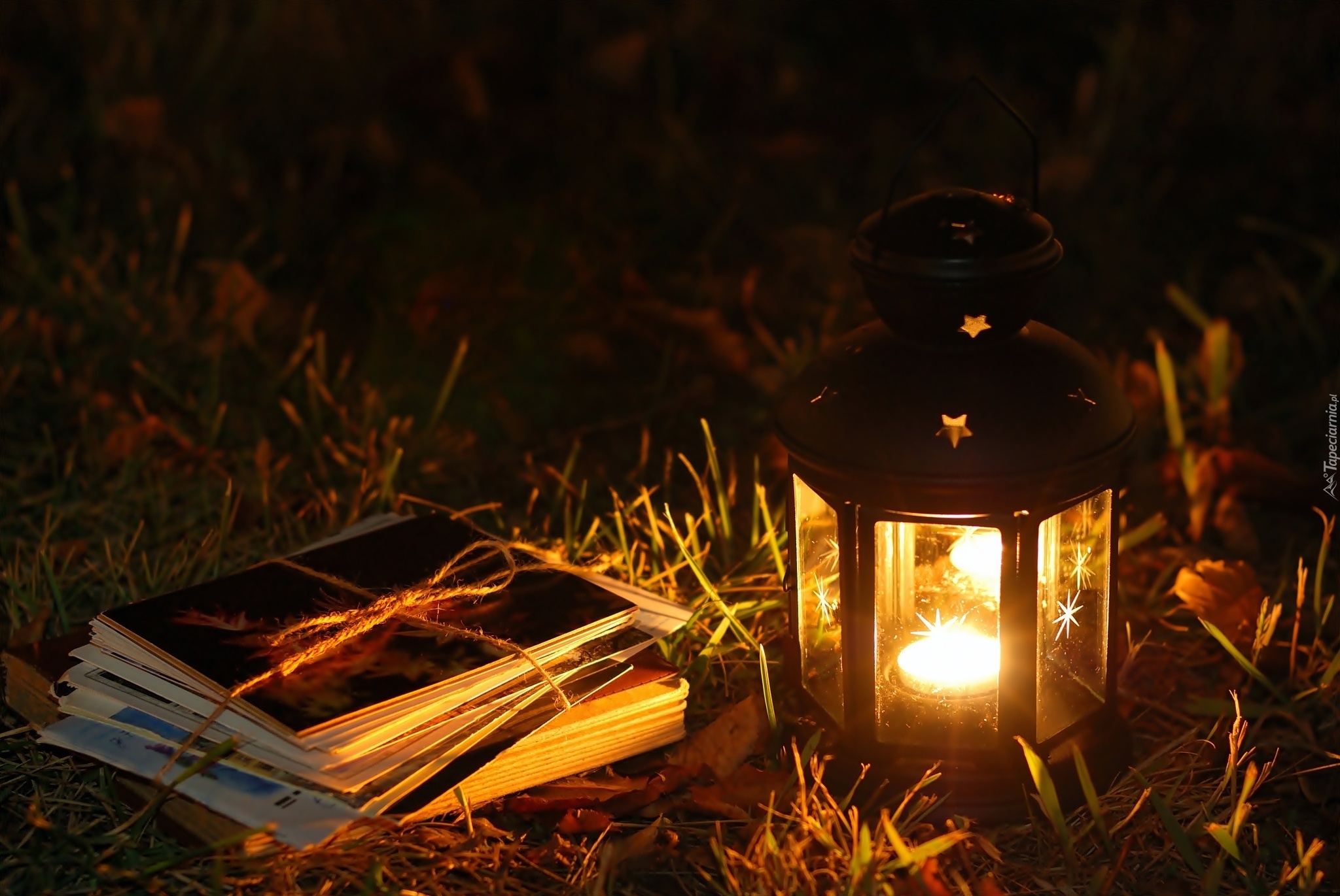 Edytor tapety: Lampion, Książka, Widokówki, Noc