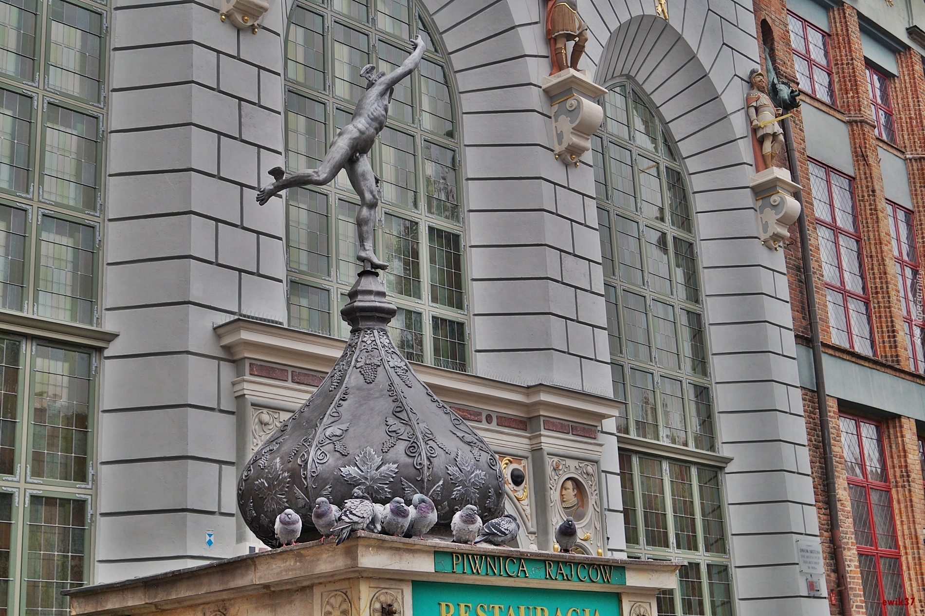 Edytor tapety: Gdańsk, Posąg, Kamienice,Gołębie