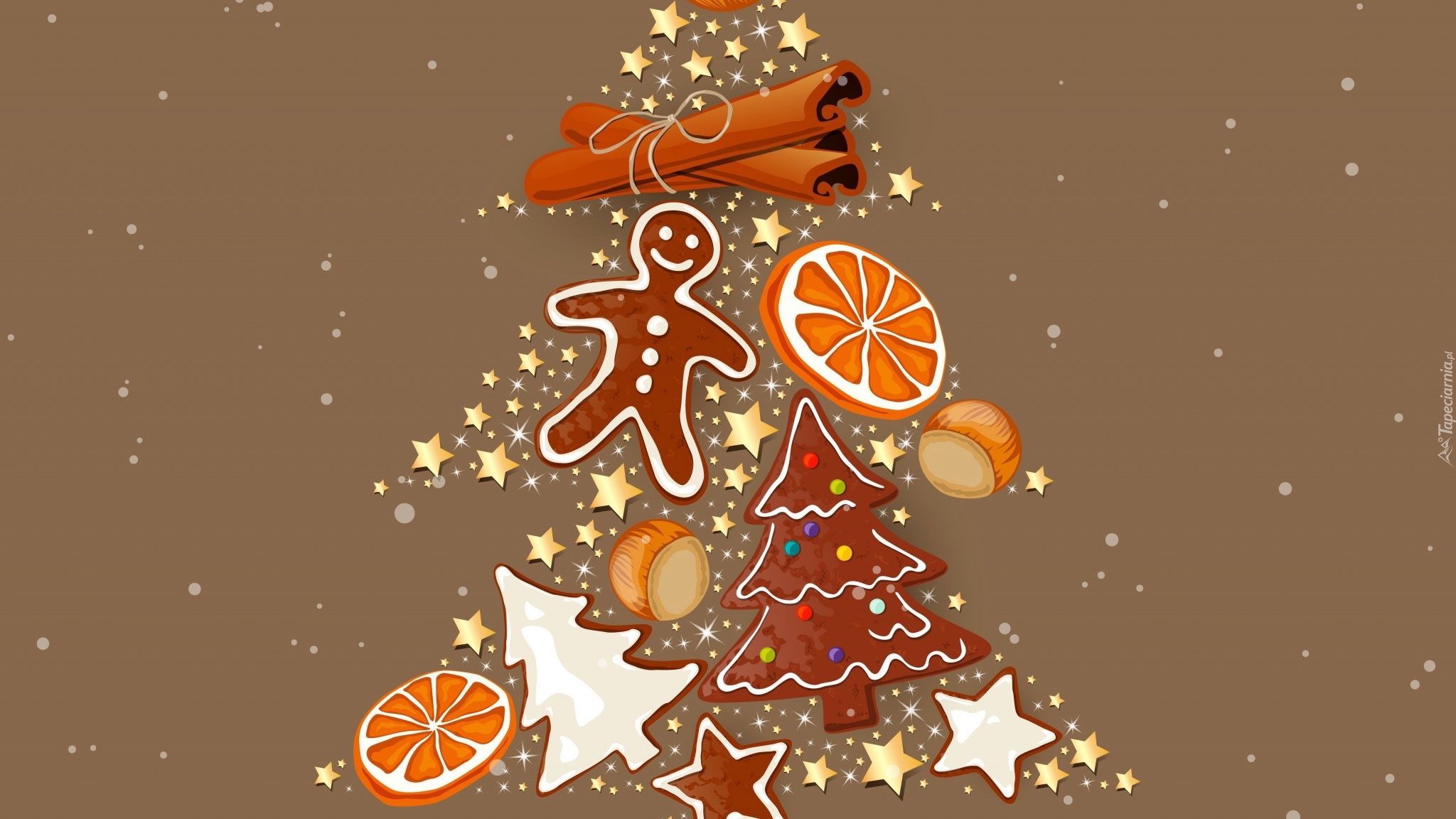 Edytor tapety: Grafika, Choinka, Z, Plasterków, Pomarańczy, Pierników