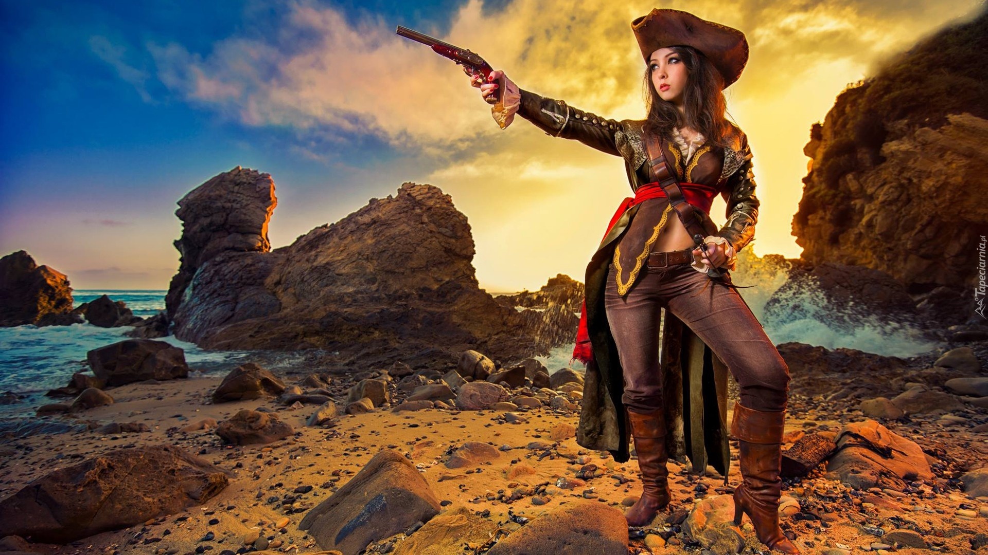 Edytor tapety: Kobieta, Pirat, Morze, Skały