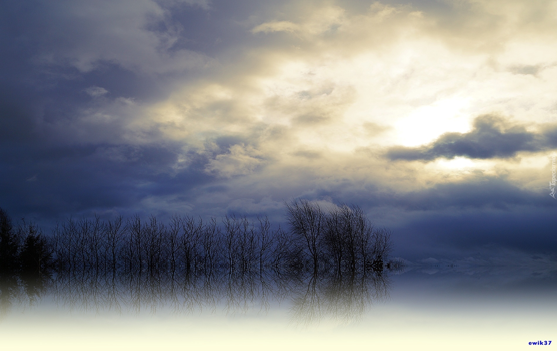 Edytor tapety: Chmury, Las, Odbicie
