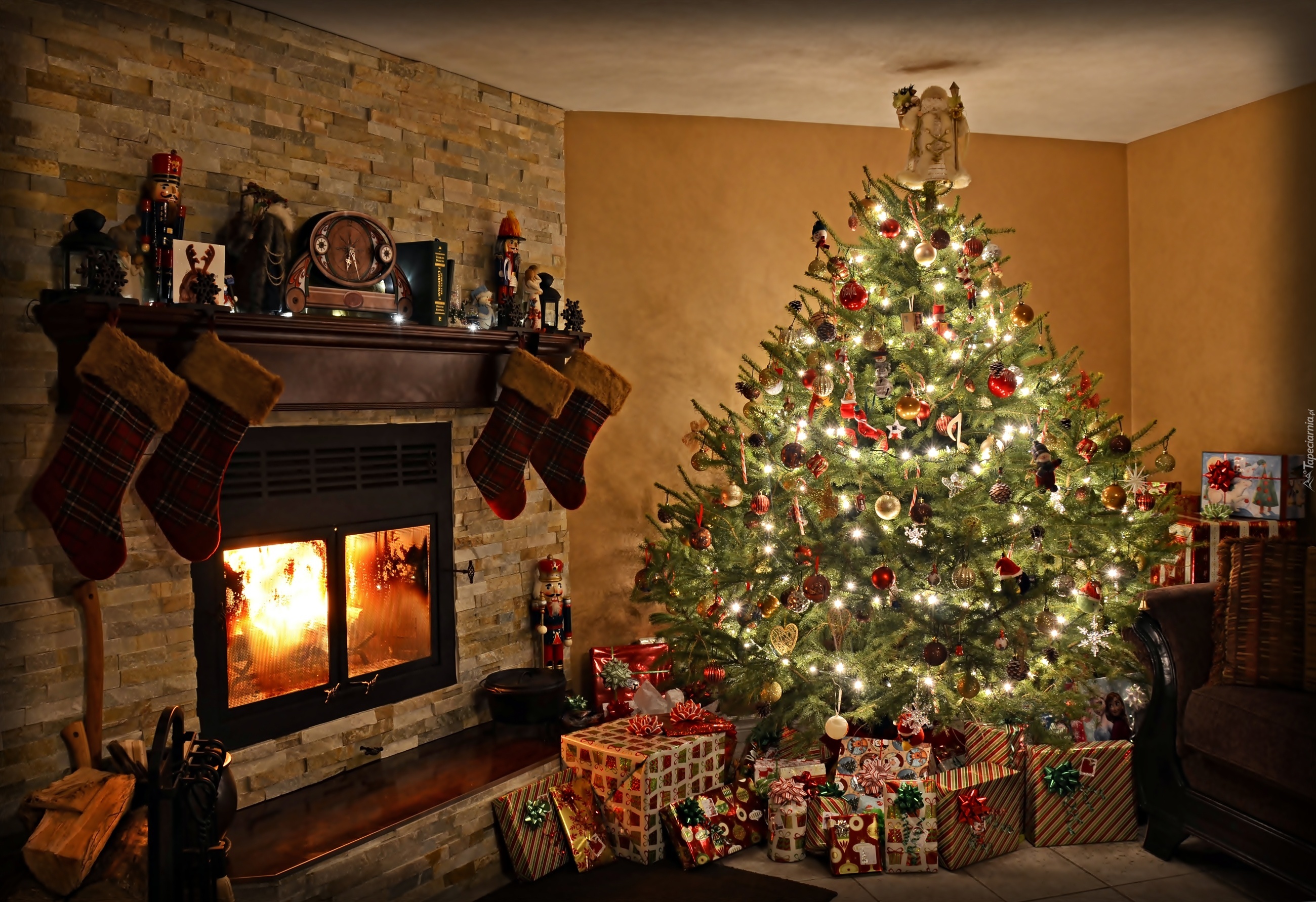 Edytor tapety: Pokój, Choinka, Kominek, Prezenty