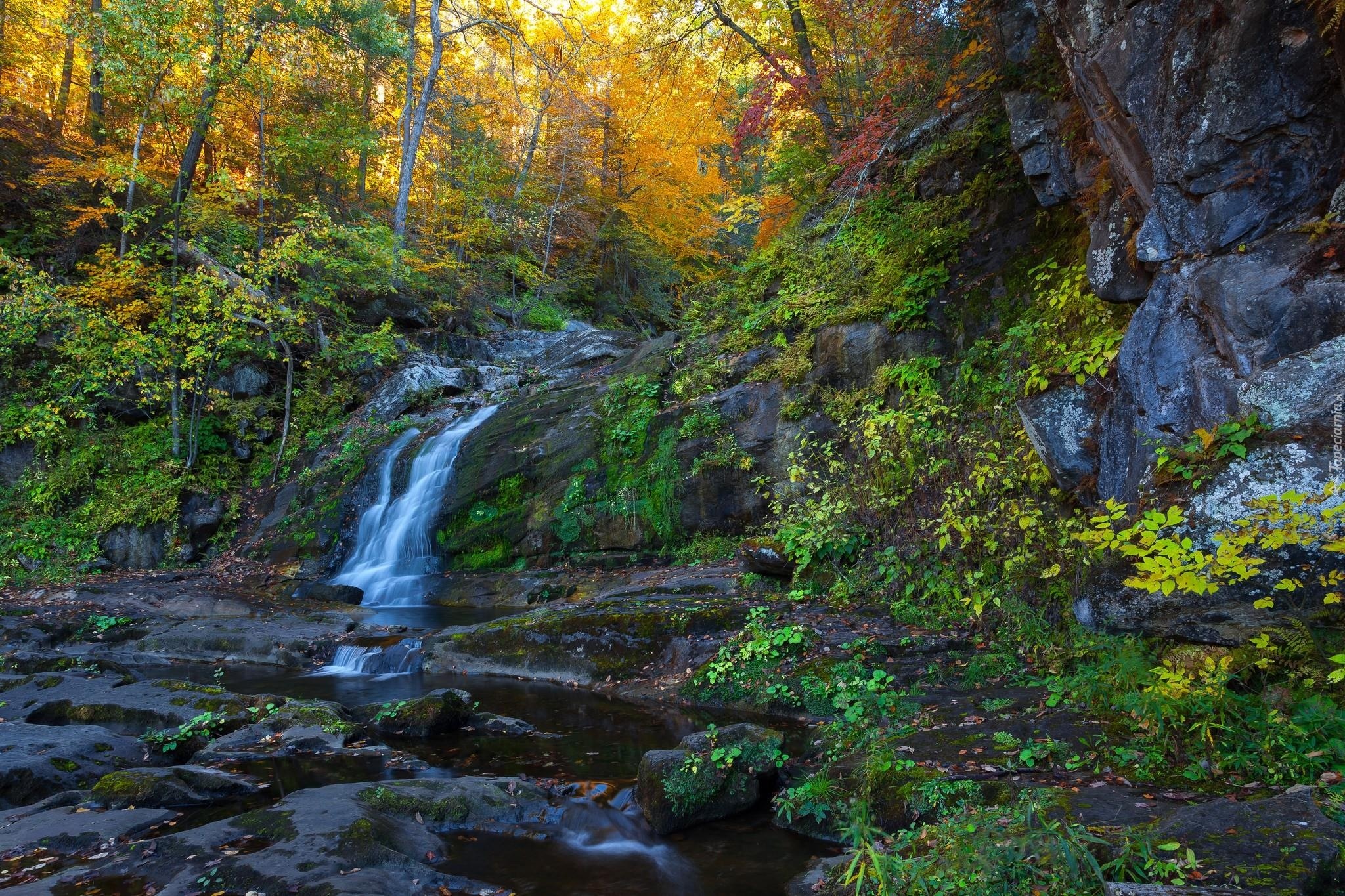 Edytor tapety: Wodospad, Skały, Kamienie, Las, Jesień