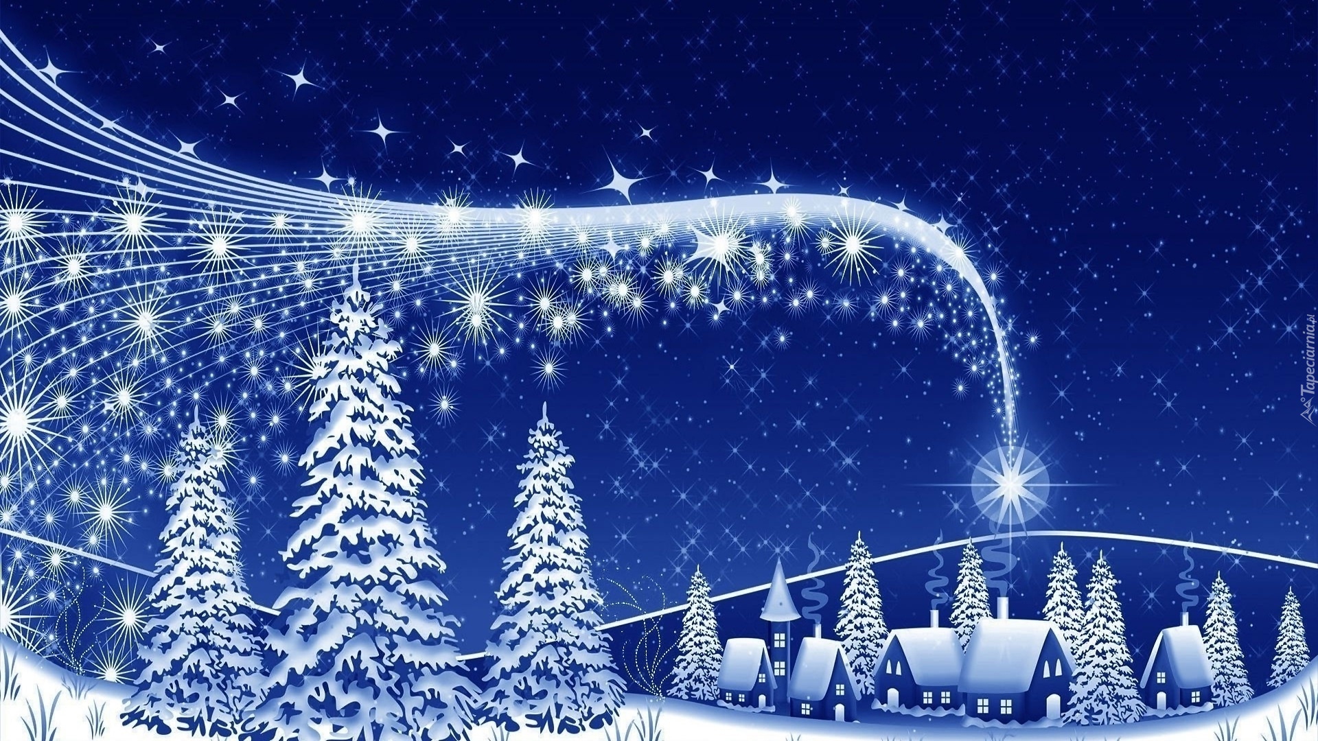 Edytor tapety: Zima, Domki, Świerki, Świąteczne