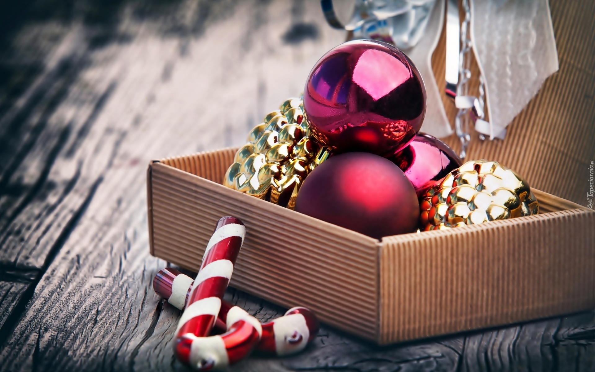 Edytor tapety: Świąteczne, Dekoracje, Bombki, Pudełko