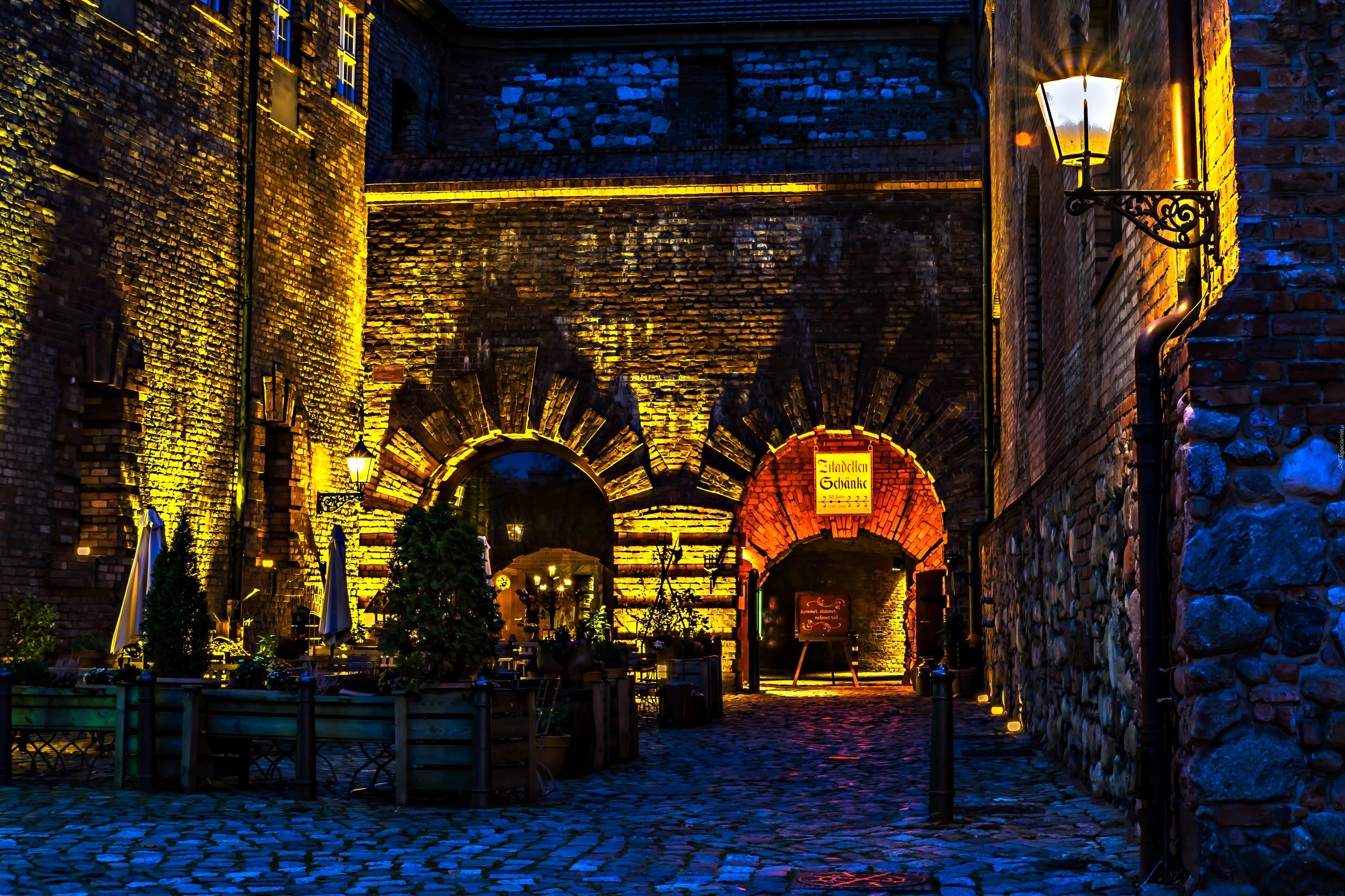 Edytor tapety: Berlin, Niemcy, Uliczka, Kawiarniany Ogródek, Miasto Nocą