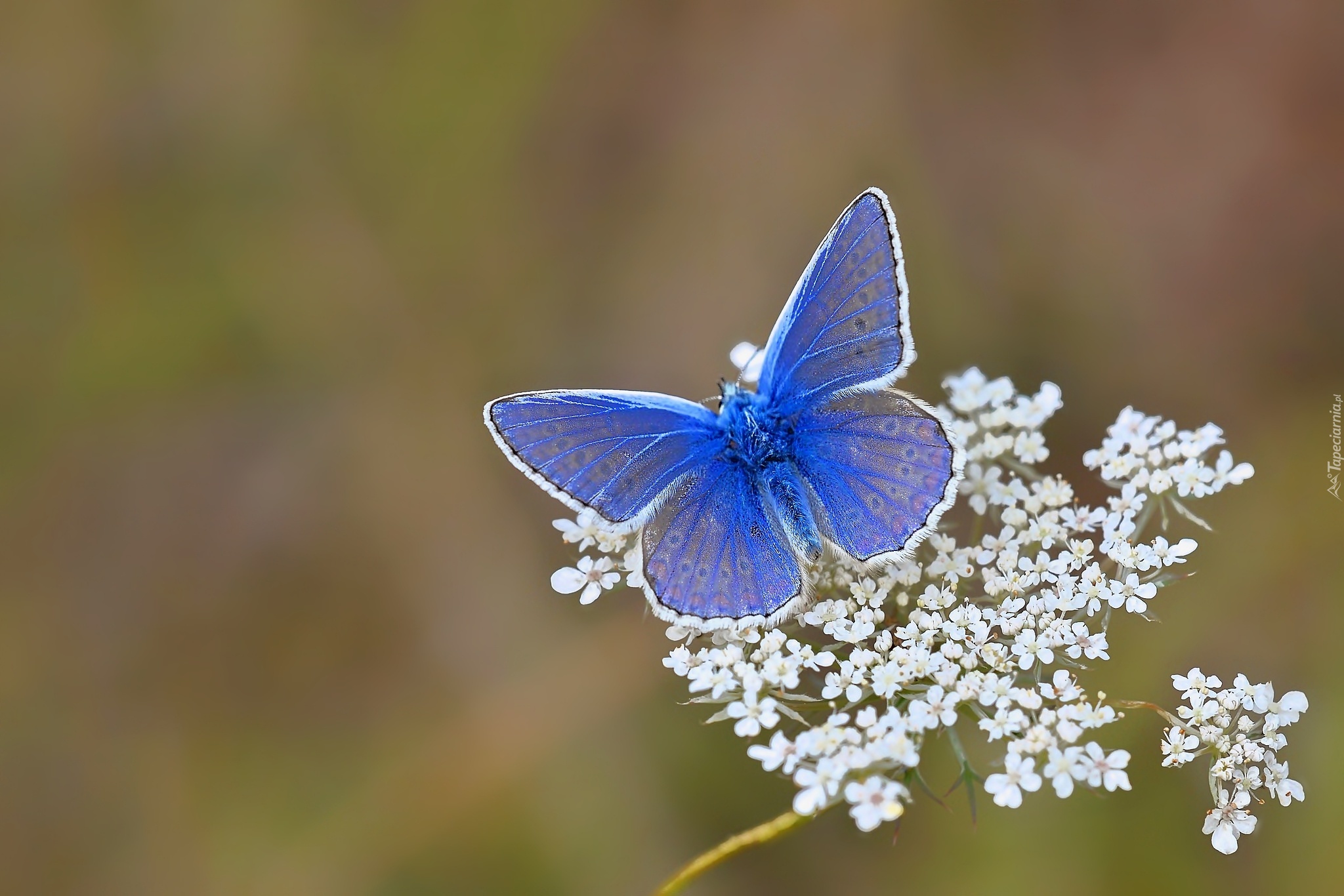 Edytor tapety: Niebieski, Motyl, Motylek, Białe, Kwiatki