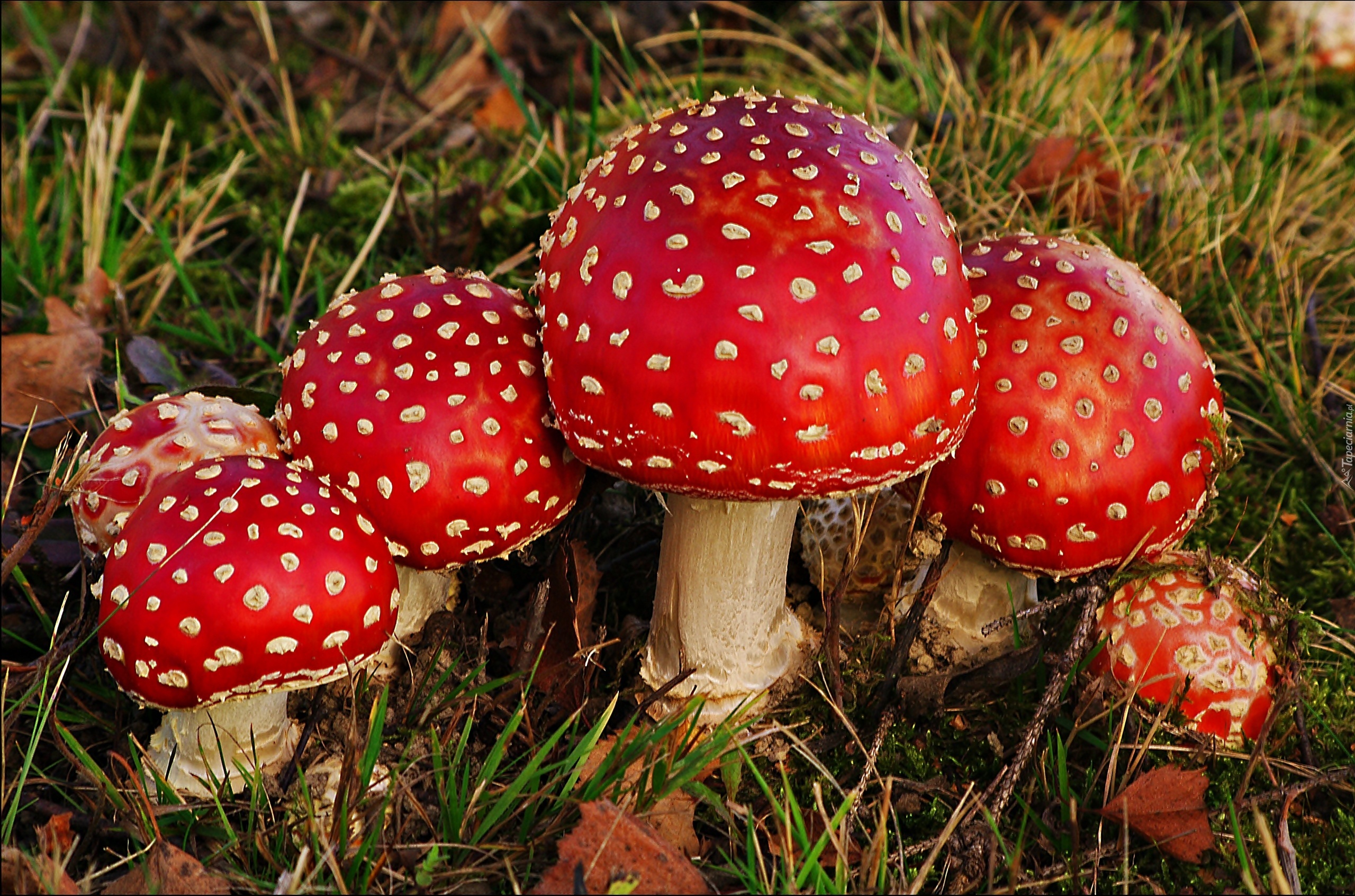 Edytor tapety: Muchomorki, Ściółka, Leśna