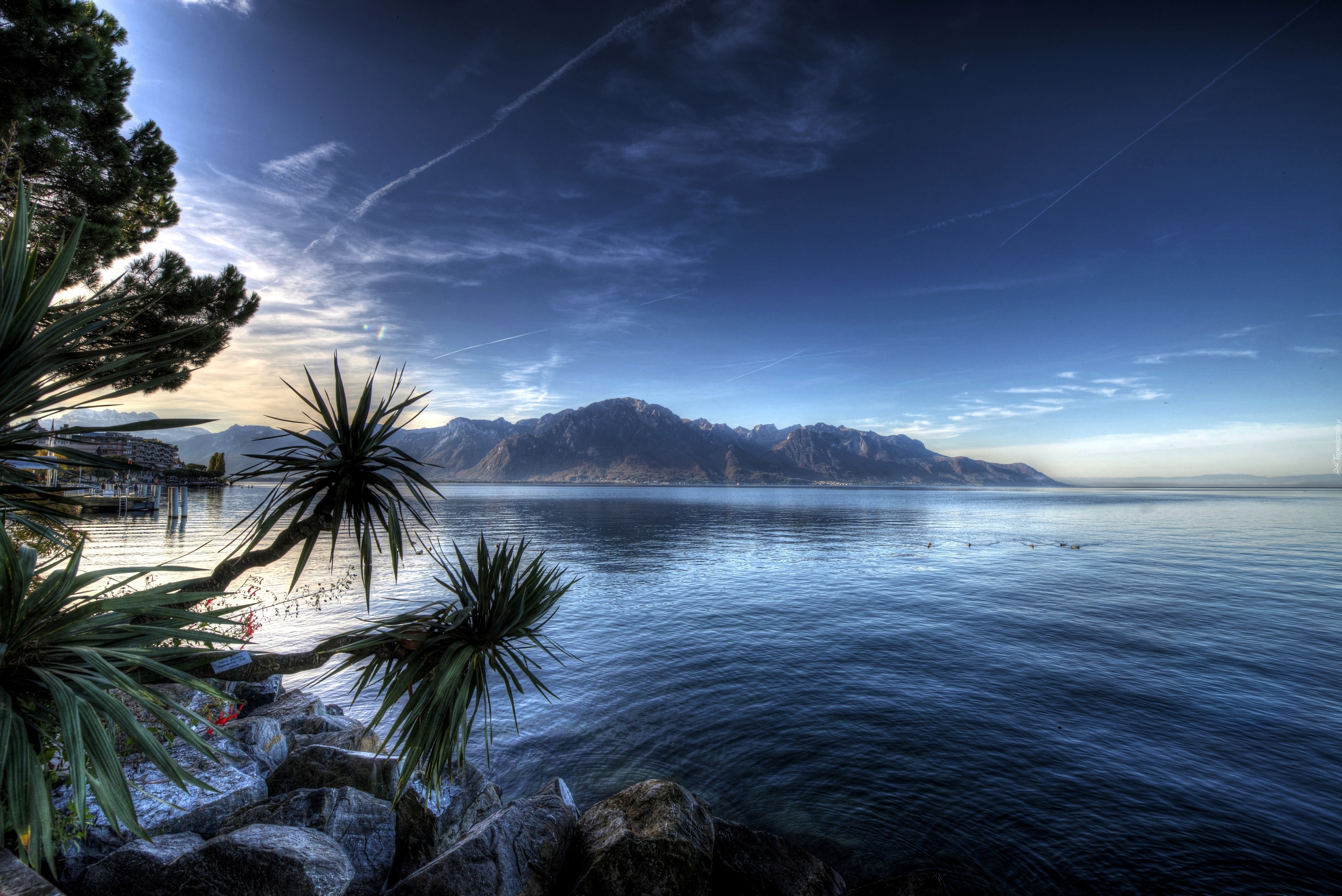 Edytor tapety: Jezioro, Kamienie, Roślina