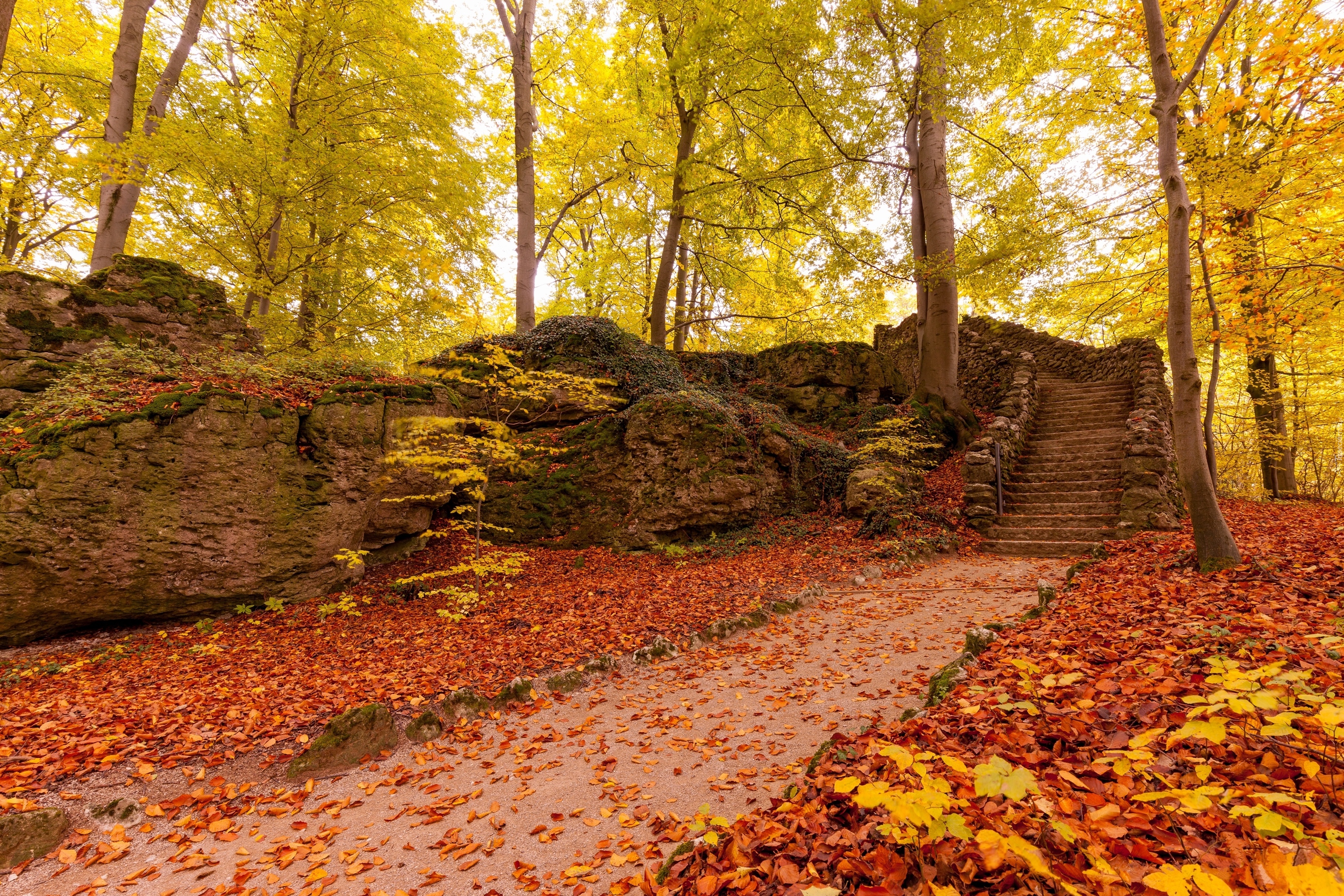 Edytor tapety: Park, Drzewa,Droga,Skały, Schody