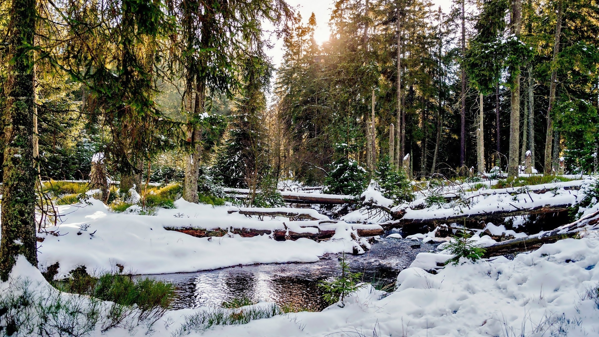 Edytor tapety: Las, Drzewa, Rzeka, Zima