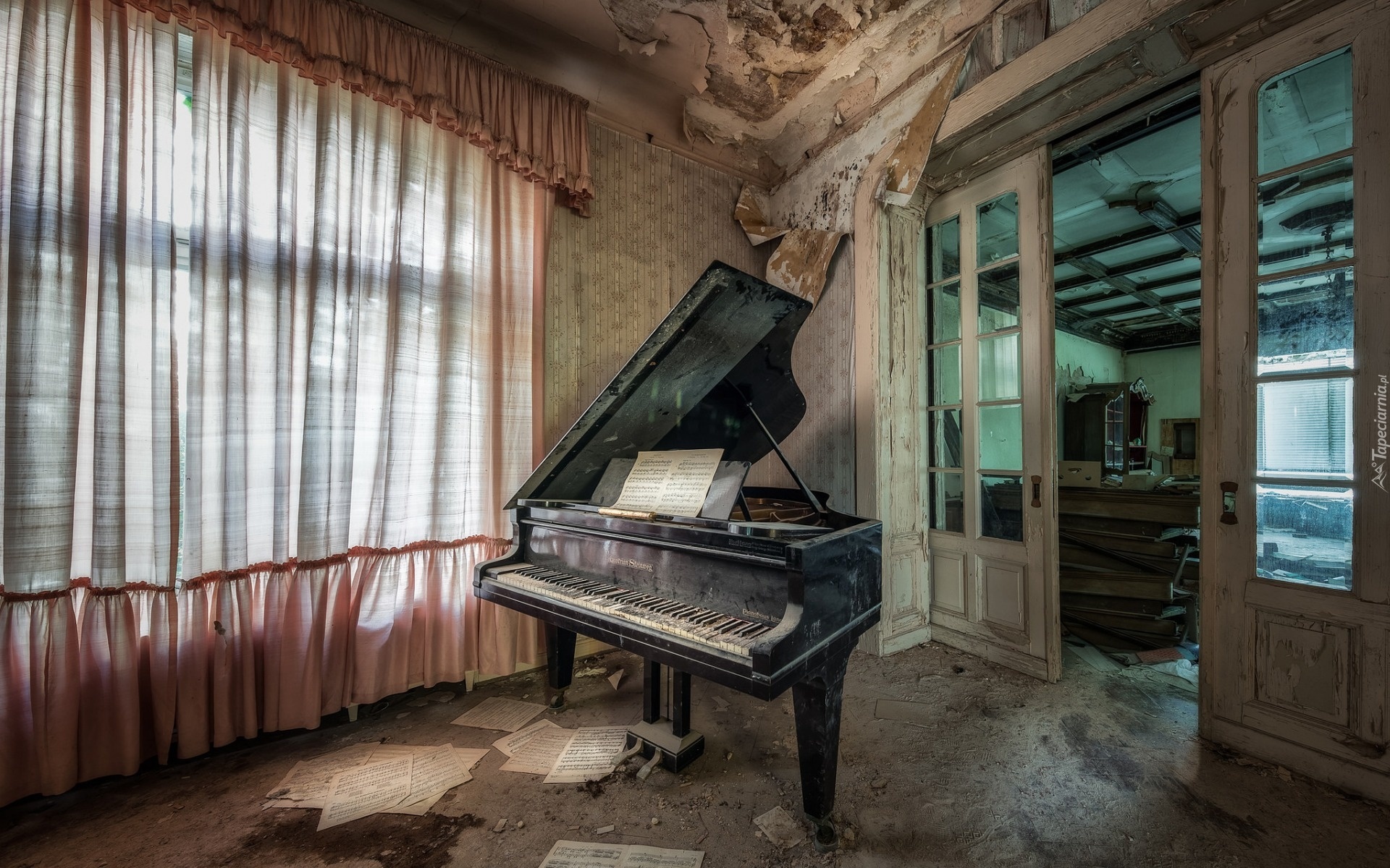 Edytor tapety: Zaniedbany, Pokój, Drzwi, Fortepian