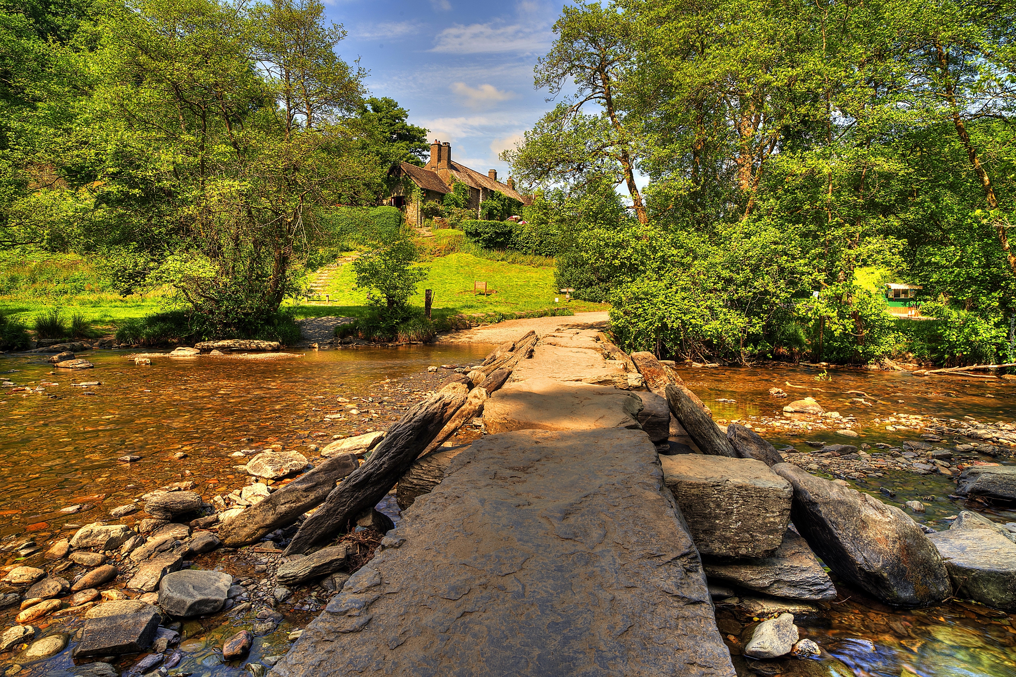 Edytor tapety: Rzeka, Kamienie, Dom, Przejście