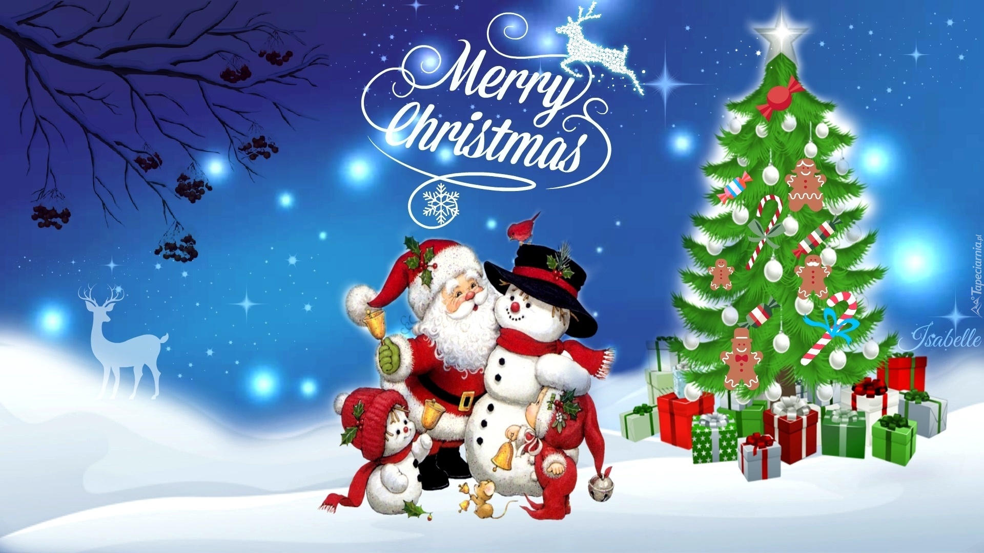 Edytor tapety: Choinka, Mikołaj, Bałwan, Prezenty, Zima