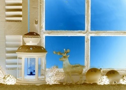 Edytor tapety: Lampion, Bombki, Szyszki, Gałązki, Jelonek, Okno, Dekoracja, Świąteczna, Świeca